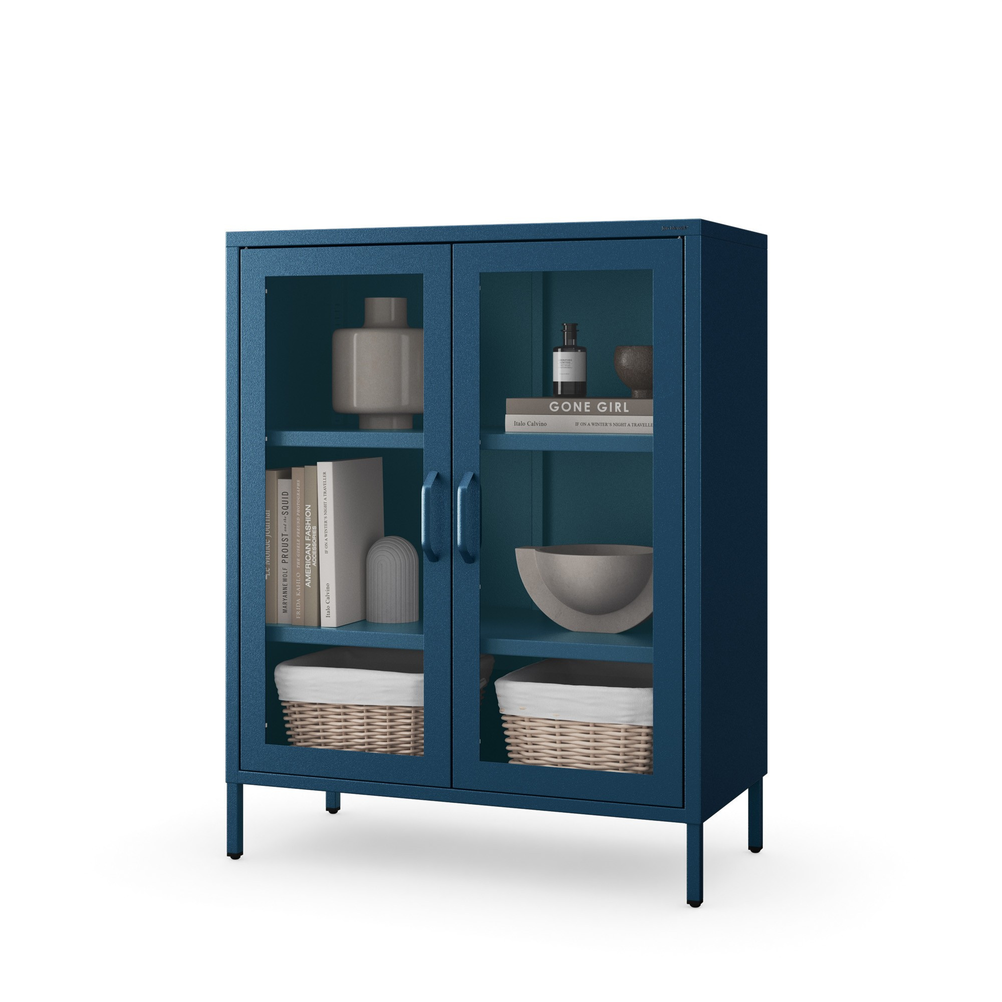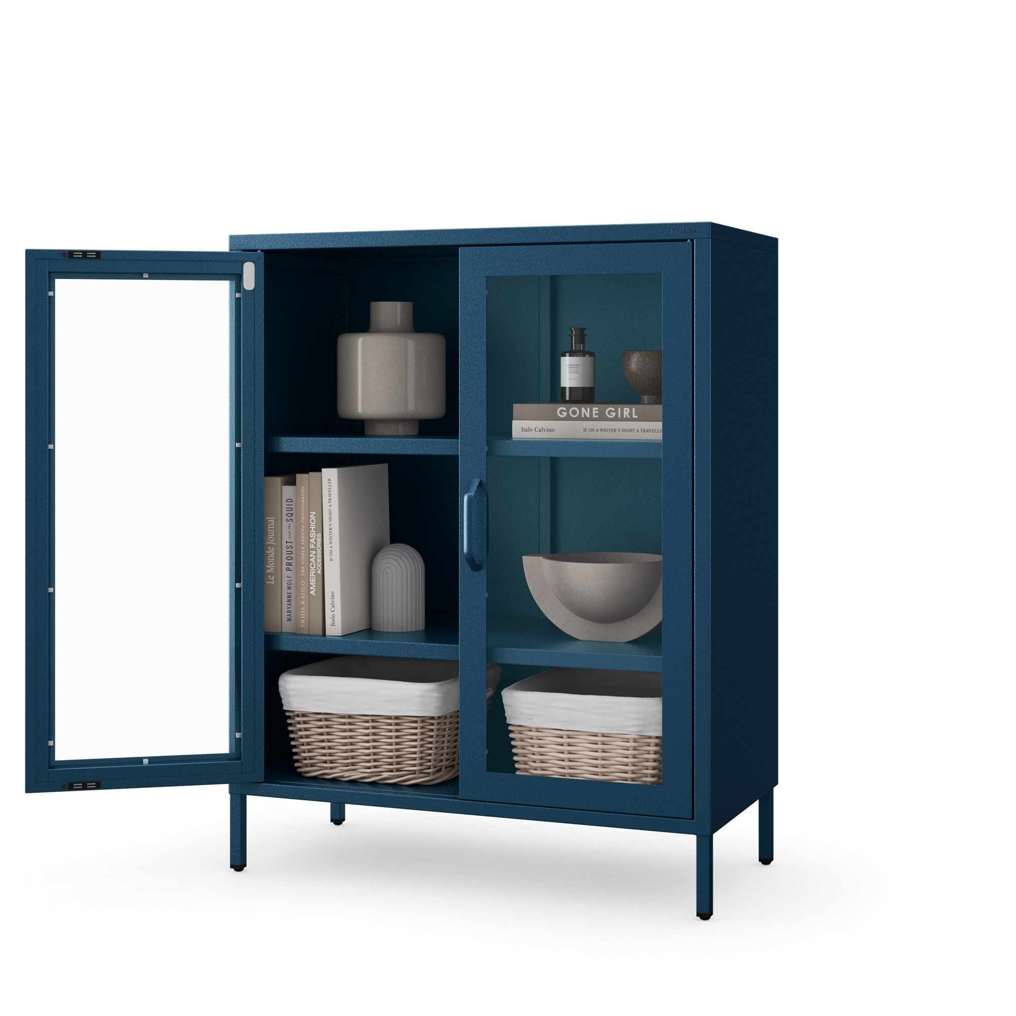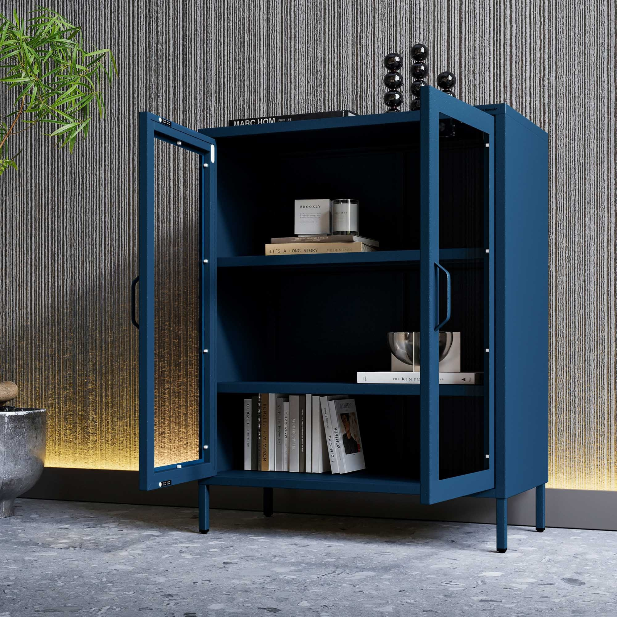 Prosklená nízká vitrína tmavě modrá: Moderní GINA, 800 x 1015 x 400 mm