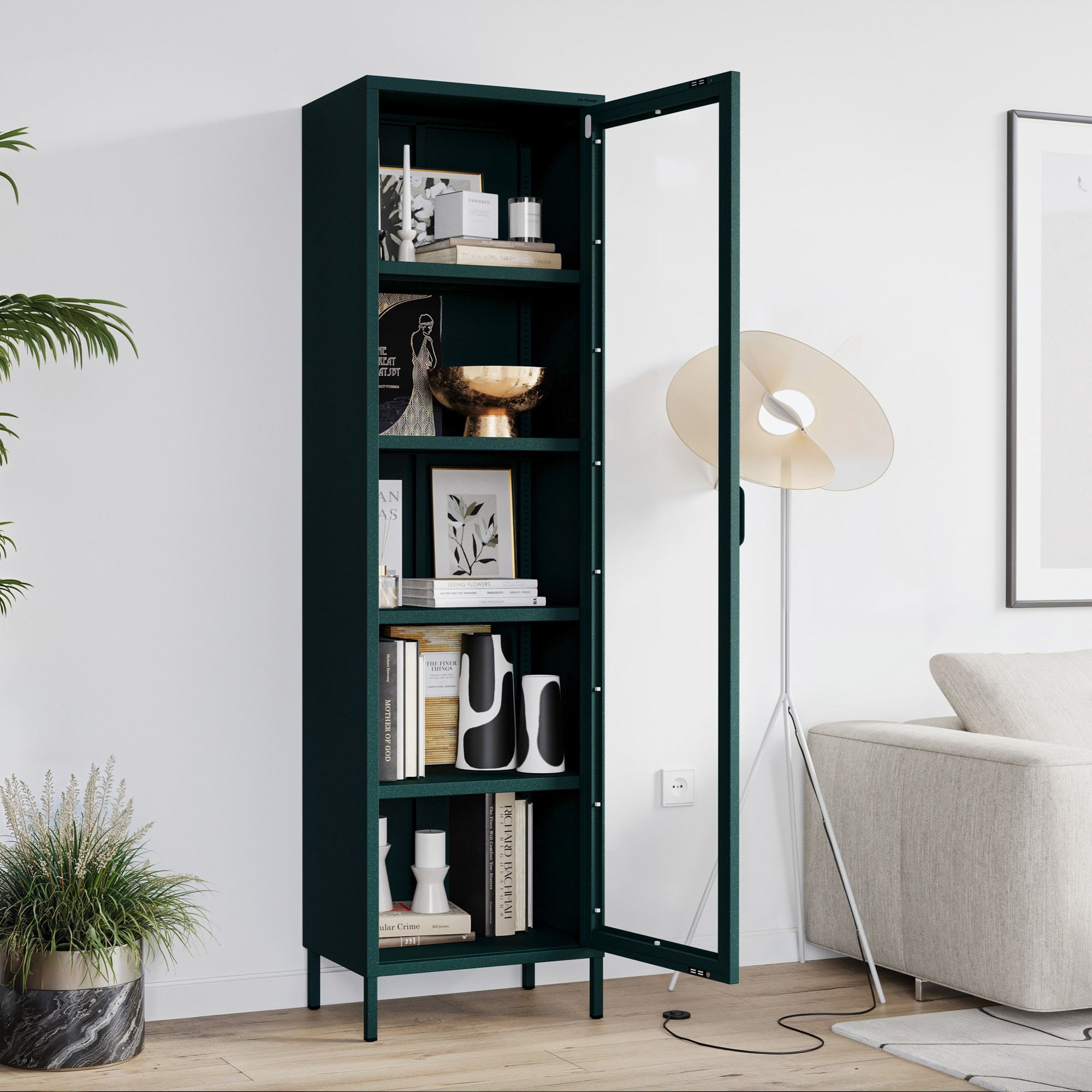 Vitrína LUIGI není jen obyčejný kus nábytku. Je to promyšlený designový prvek, který se stane dominantou každého interiéru. Její štíhlá silueta a elegantní provedení se hodí do moderních, industriálních i glamour stylů. Ať už máte rádi minimalismus nebo preferujete bohaté dekorace, vitrína LUIGI se snadno přizpůsobí vašemu vkusu.