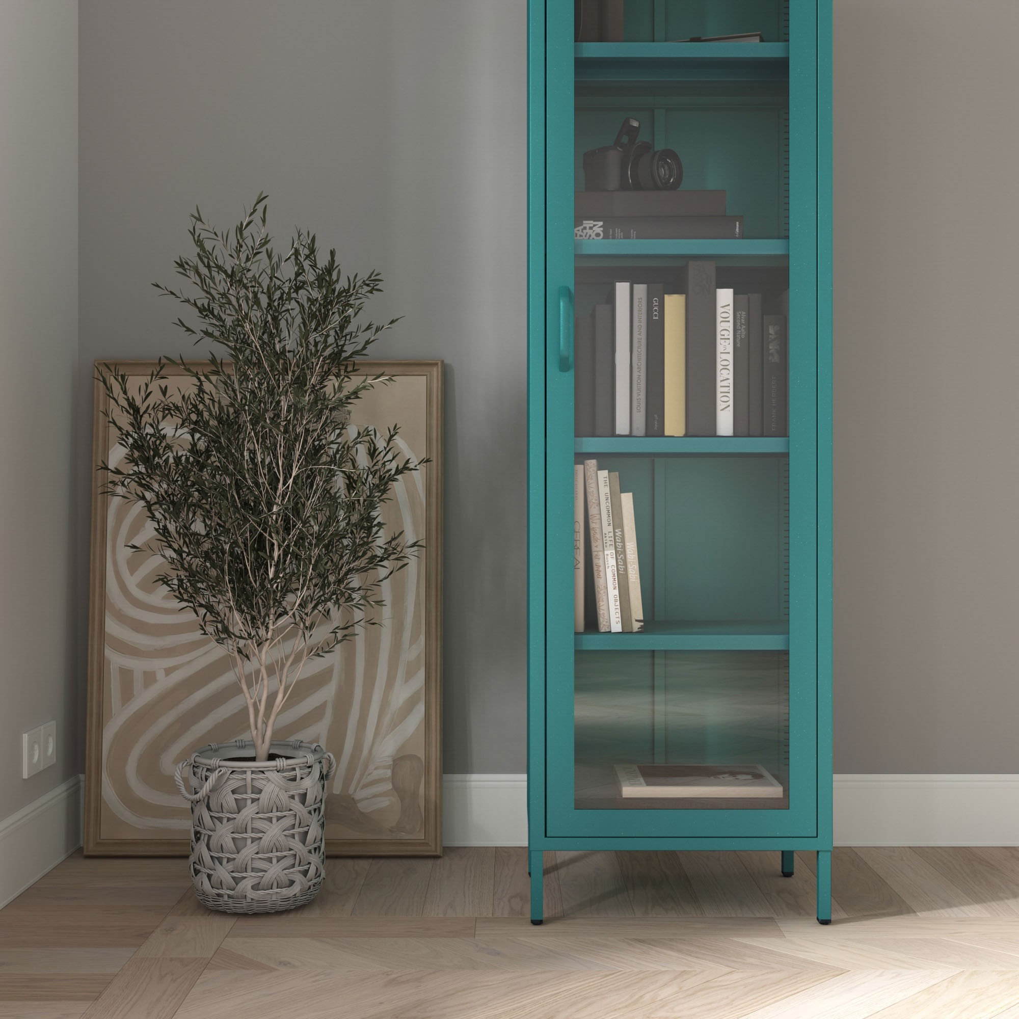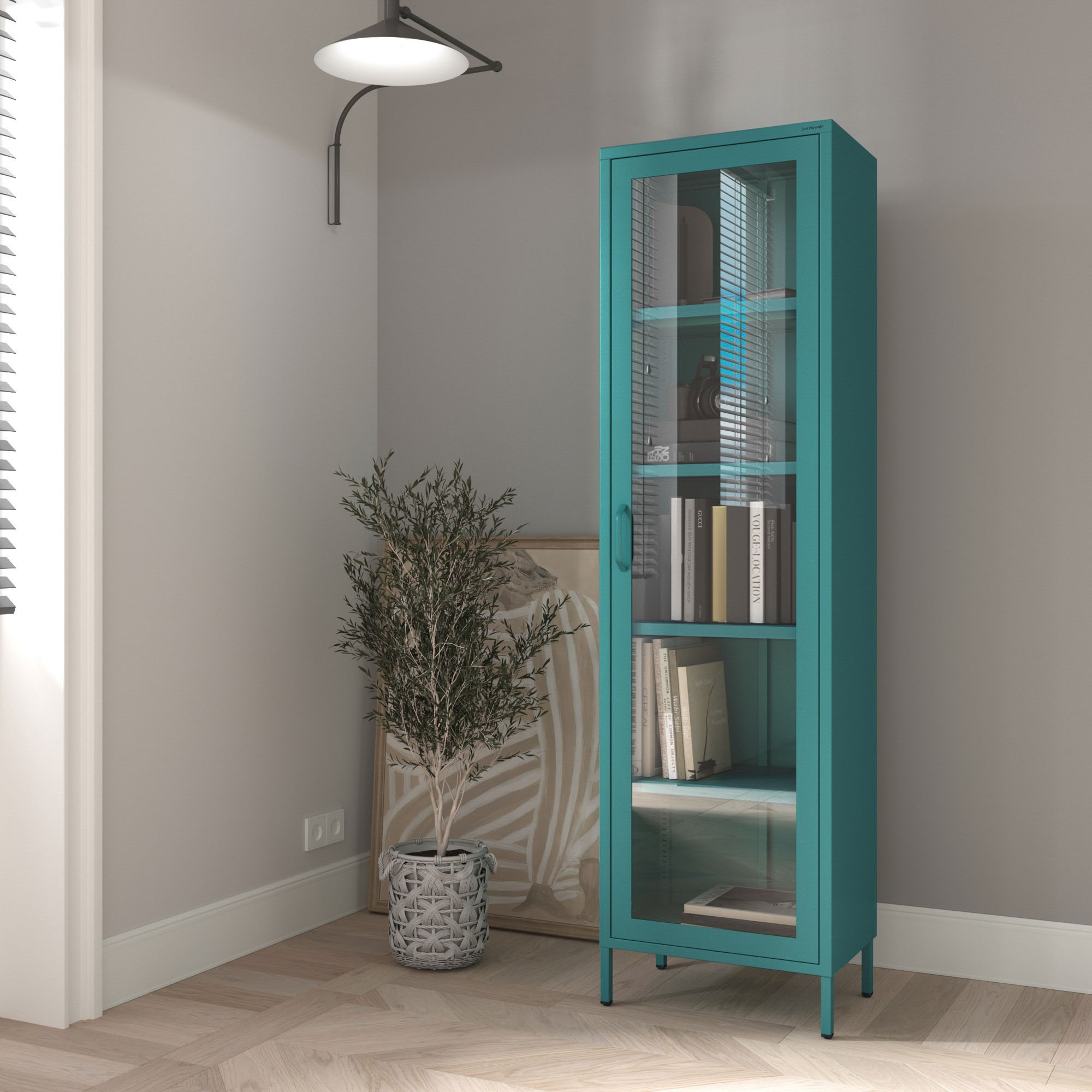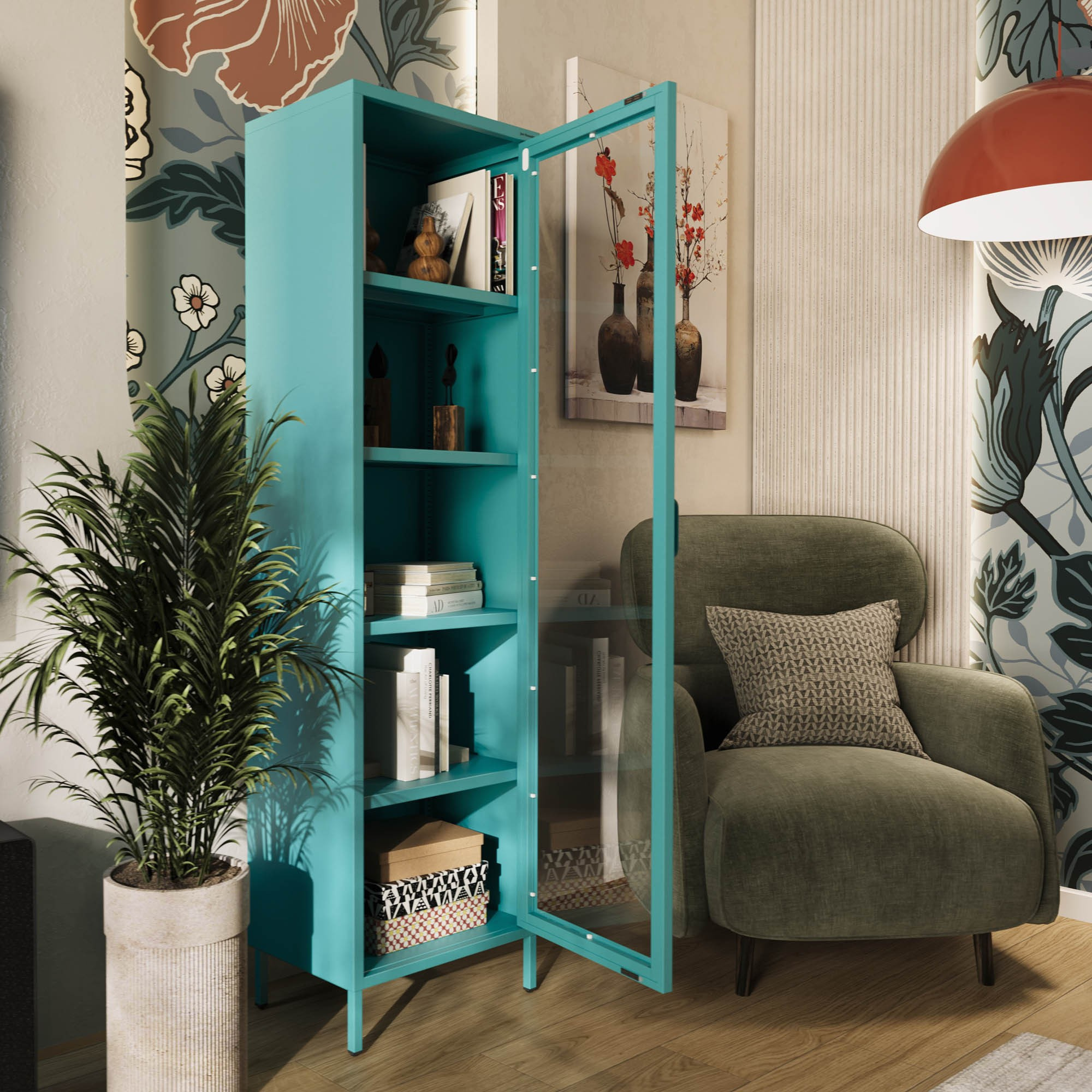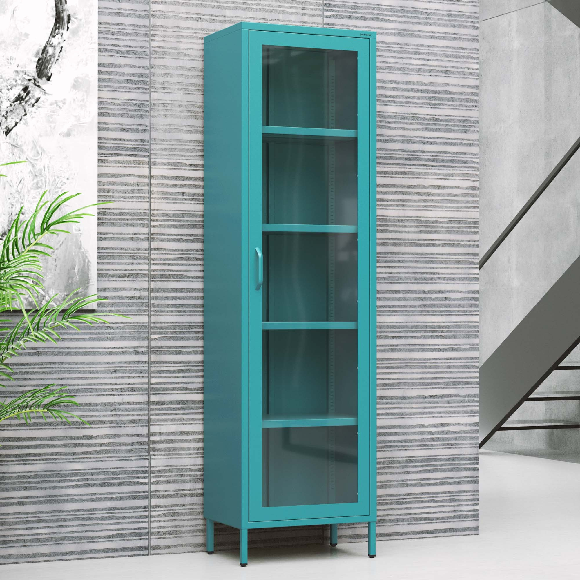 Prosklená vitrína úzká mořská / tyrkysová Moderní LUIGI 500 x 1800 x 350 mm