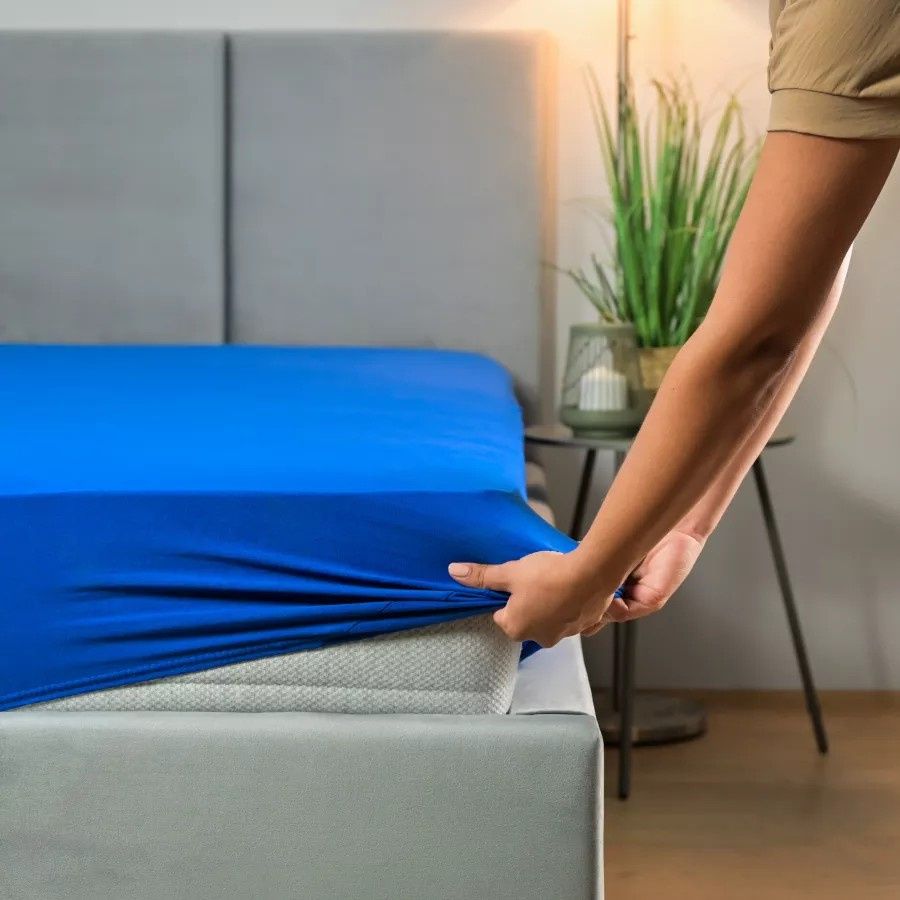 Prostěradlo vyrobené ze 100% bavlněné vysoce kvalitní česané příze. Je to velmi odolná a také příjemná na dotek tkanina poskytující velký komfort při používání. Profesionální provedení v kombinaci se zajímavou barevností tvoří ideální řešení pro Vaši ložnici! Vysoká gramáž materiálu (145 g/m²) zaručuje vynikající kvalitu a trvanlivost produktu. Pasuje na matrace o tloušťce do 25 cm.