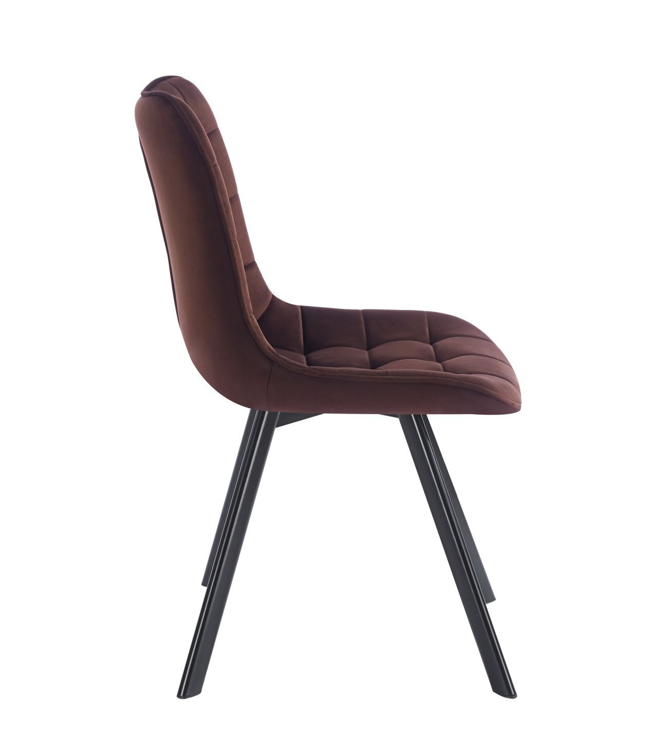Rozměry: - šířka sedáku: 46 cm - výška sedáku: 48 cm - celková výška: 84 cm - hloubka sedáku: 42 cm Materiál - čalounění: samet Davis Riviera 28 - nohy: kov lakovaný práškovou barvou Barva: - sedák: hnědý - nohy: černé