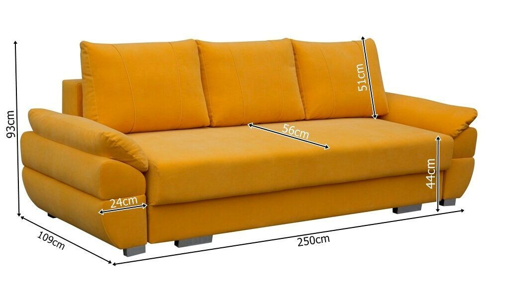 Berenika je moderní pohovka se snadným rozkladem pomocí automatu a úložným prostorem. Pohodlné sezení Vám zajistí kombinace pružin faliste a bonell s kvalitní PUR pěnou. Jednoduchým rozkladem pomocí automatu vznikne lůžko vhodné k příležitostnému spaní. Pohovku nabízíme v kvalitní potahové látce, a to v několika barevných provedeních, které také naleznete v naší nabídce. Rozpis rozměrů najdete na přiloženém obrázku s nákresem. V ceně pohovky jsou 3 velké opěrné polštáře. Ostatní vyobrazené dekorace nejsou v ceně.