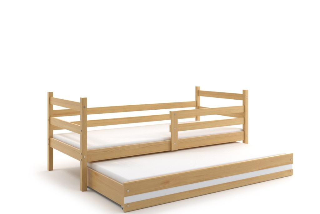 Dětská postel Norbert II je určena pro ty, kteří pro své dítě hledají funkčnost, pohodlí a kvalitu. Postel je vyrobena z borovicového dřeva. Její stabilní konstrukce, zaoblené hrany a zábrana, která je v ceně postele, zajišťují bezpečnost a pohodlí dítěte. Zábranu si můžete podle potřeby umístit na pravou, nebo levou stranu postele. Součástí postele je také praktická přistýlka s matrací, kterou můžete využít pro druhé dítě, nebo když u Vašeho dítěte bude chtít přespat kamarád/ka. Obě části postele mají rošt a pěnovou matraci se snímatelným potahem. Tloušťka matrace je 7cm. Plocha pro spaní je 90x200 cm (vrchní část) a 80x190 cm (přistýlka). Postel je dodávána v demontu a součástí je montážní plánek včetně všech potřebných spojovacích materiálů. Vyobrazené dekorace nejsou v ceně.