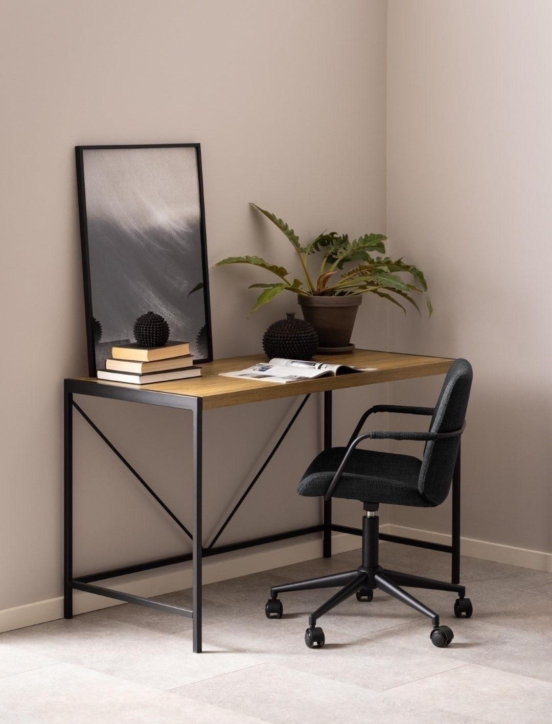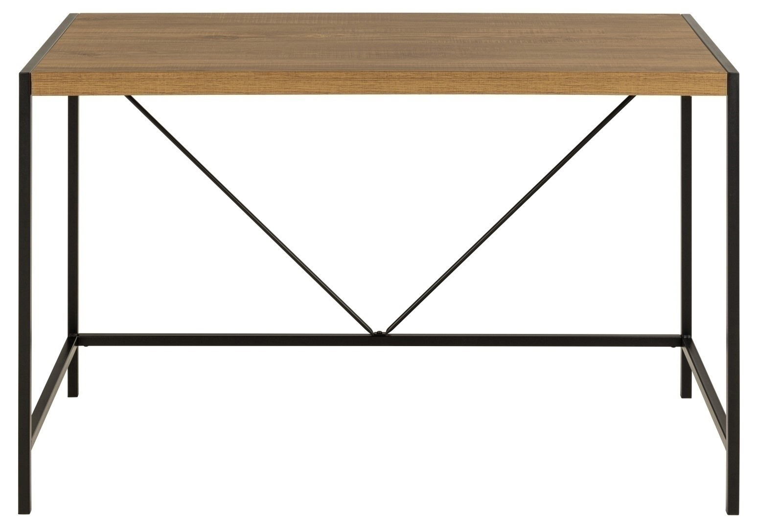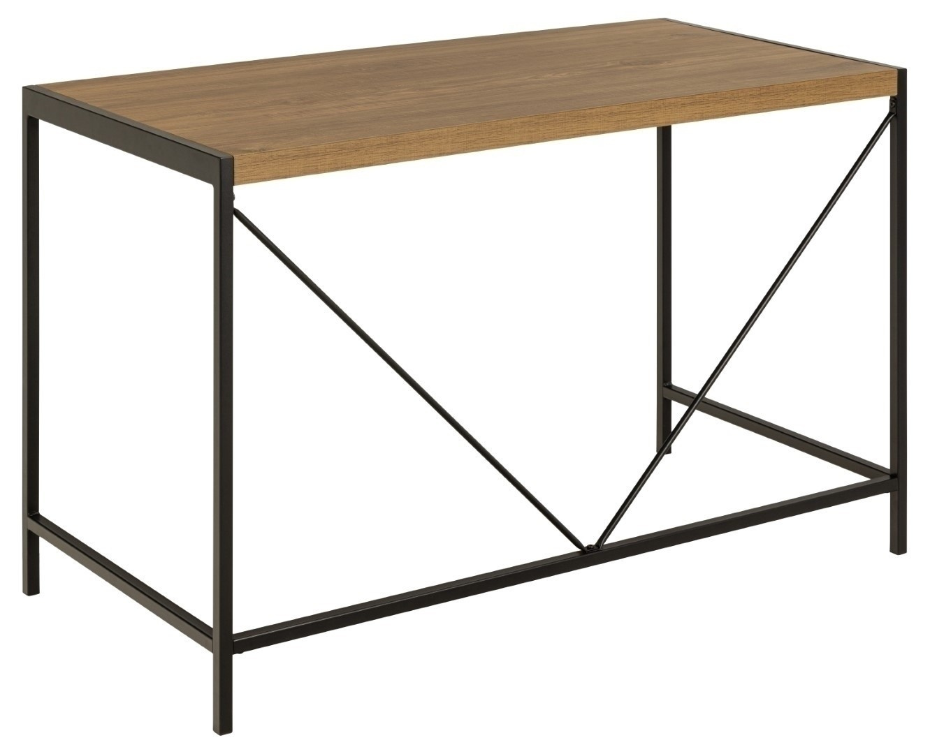 Obdélníkový stůl Bahamas, deska matný rustikální dub, matná melaminová, rám a základna černé, matně práškově lakovaná ocel, 120x60x75 cm. Změňte výzdobu ve svém pracovním prostoru pomocí stolu v industriálním stylu. Vyrobený z odolné desky ve stylu rustikálního dubu, deska je usazena na elegantním černém ocelovém rámu zajišťujícím stabilitu. Stůl zdobí drátěná dekorace ve tvaru písmene V. Stůl spojuje jednoduchý design se stylem pro inspirativní pracovní místo. Max. zatížení desky: 100 kg. Stůl vyžaduje montáž. Hmotnost stolu je 14,5 kg. Rozměry kartonu: 122x10,5x65cm