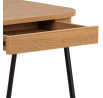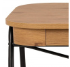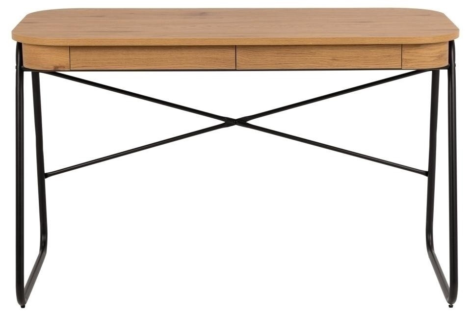 Vytvořeno s ohledem na útulný a kreativní koutek v domě, tento stůl se snadno stane vaším oblíbeným místem pro náhlé výbuchy kreativity. Dubový vzhled dýhy, zaoblené rohy a černý ocelový rám vytvářejí nadčasový design, který vyzařuje moderní kouzlo. Dvě zásuvky zajišťují bezpečné uložení sešitů, per a dalších drobností. Materiál desky: MDF deska s dýhou imitující ab. základ: kov lakovaný práškovou barvou. Výška vzdálenosti od podlahy k desce stolu: 65 cm Vyžaduje montáž Rozměry kartonu: 129,5x66,5x10,5 cm Hmotnost: 23,5 kg