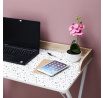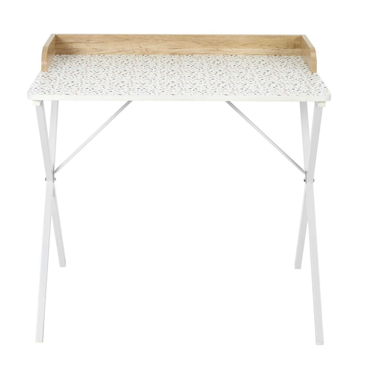Pracuj s úsměvem u stolu Brice se vzorem teraco. Jeho elegantní, moderní design s charakteristickým vzorem teraca dodává styl a svěžest každému interiéru. Solidní konstrukce a prostorná deska zajišťují pohodlí a funkčnost, ideálně se hodí do kanceláře, domácí pracovny nebo pracovního prostoru. Délka produktu: 84,4 cm Výška produktu: 50 cm Hloubka produktu: 80 cm Materiál desky: Dřevo - MDF Materiál nohou: Kov - železo