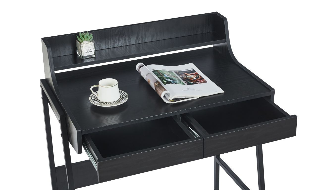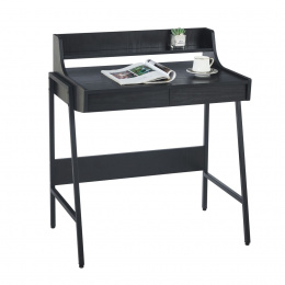 ROZMĚRY: - hloubka: 48 cm - šířka: 78 cm - výška: 76 cm MATERIÁL: - korpus: laminovaná dřevotříska - rám: práškově lakovaný kov BARVA: - korpus + nadstavbová police: černá - rám: černá OSTATNÍ: - dvě zásuvky + nadstavbová police