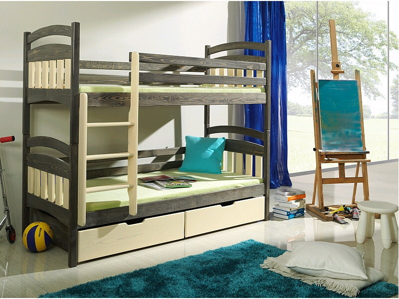 Dětská patrová postel JAKUB je vyrobena z kvalitního masivního borovicového dřeva. Součástí postele je rošt . Cena postele je uvedena v přírodním provedení. Za barevné provedení je příplatek 330.- kč. Postel lze vyrobit na zakázku i ve Vámi požadovaném rozměru za příplatek, který Vám sdělíme dle Vašeho požadavku.