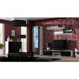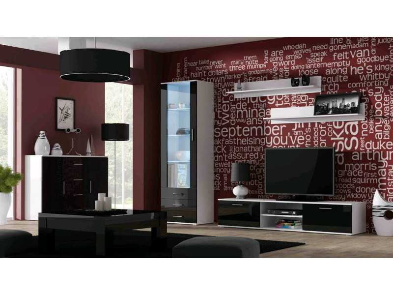 V ceně obývací stěny je RTV komoda pod televizi + Police 2x + Vitrína 1x + Komoda 1x.