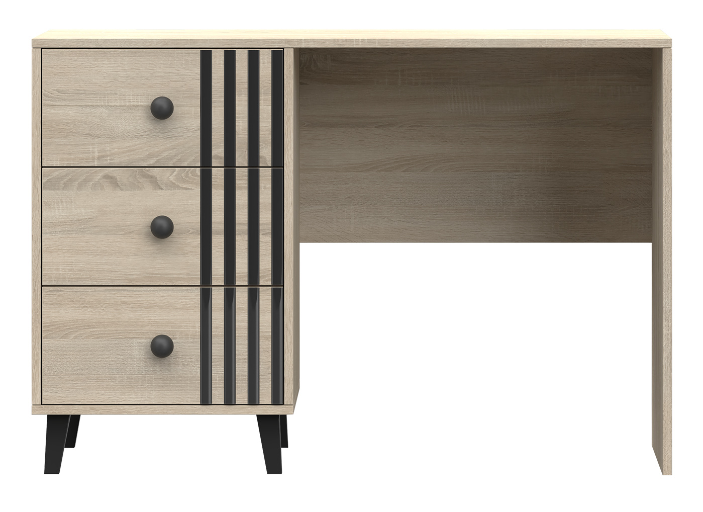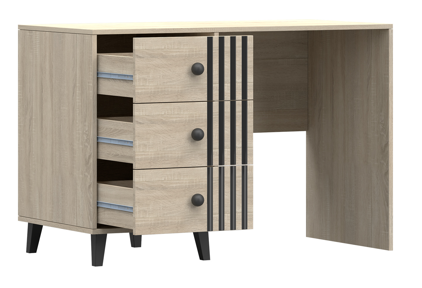 Nábytek FOX kombinuje moderní skandinávský styl s funkčností a každodenním pohodlím. Minimalistické černé kovové úchytky, mírně lesklé šambrány mohou interiéru dodat eleganci a modernost. Jejich jednoduchost vytváří sofistikovaný efekt, který umocňuje charakter interiéru a dodává mu industriální a moderní styl.
