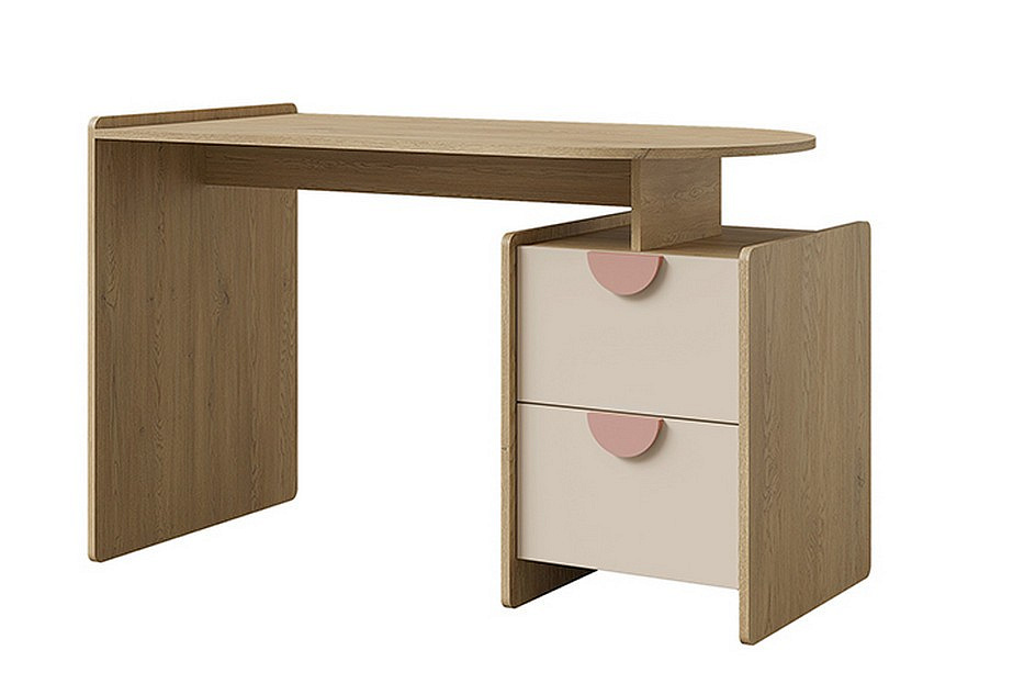 Psací stůl Leya R12 L/P dub cremona/macadamia/pudrová růžová