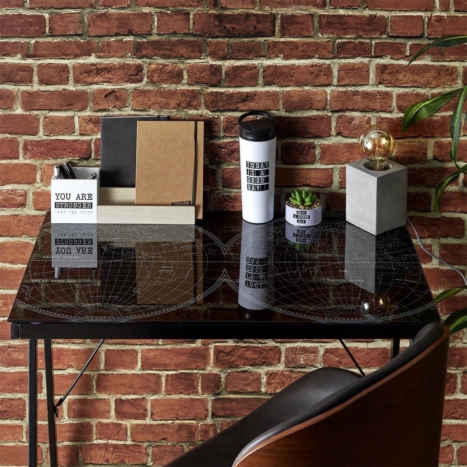 Mládežnický stůl Navigo je vynikající nábytek nejen pro hraní her, ale také pro učení. Dělání domácích úkolů u stylového černého stolu bude určitě příjemnější. Jednoduchá nenápadná forma stolu z něj činí nadčasový a univerzální kus. Černá skleněná deska byla ozdobena grafikou s mapou světa. Celou konstrukci podpírají černé, práškově lakované nohy. Za psacím stolem byly dodatečně umístěny podpěry, které stabilizují nábytek. Rozměry balení: 8,5x56x87 cm Hmotnost: 11 kg