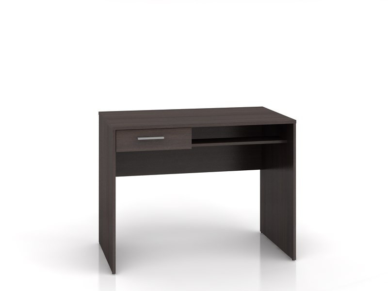 Jednoduchý psací stůl Nepo BIU1S je v barvě wenge. Obsahuje 1 zásuvku a 1 pevnou policí. Zásuvka je na válečkových kolejničkách.