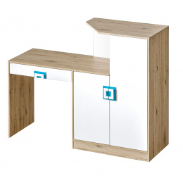 Psací stůl s komodou NICO 11, Světlý Dub/Bílá/Tyrkys