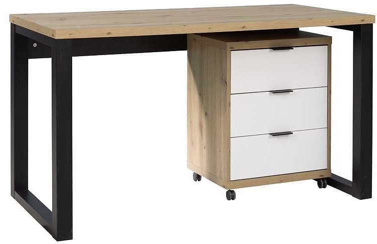 Psací stůl s kontejnerem MARO I Artisan+Černá+Bílá