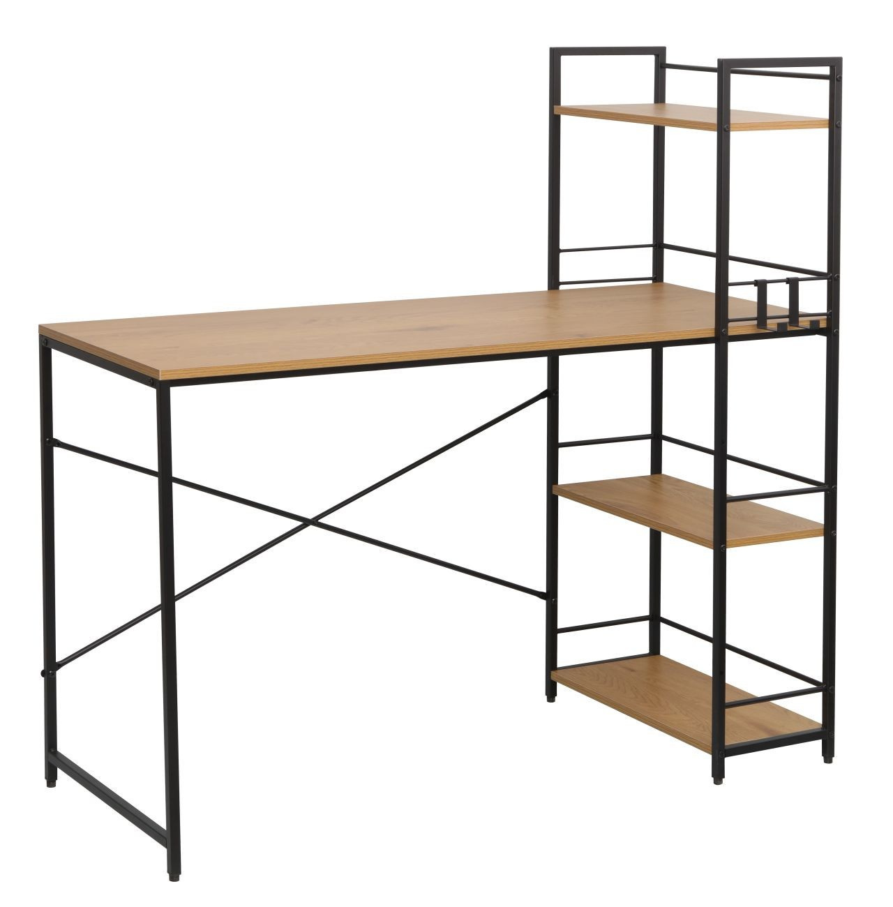 Psací stůl s regálem přírodní dub/černý rám B20-FXJG