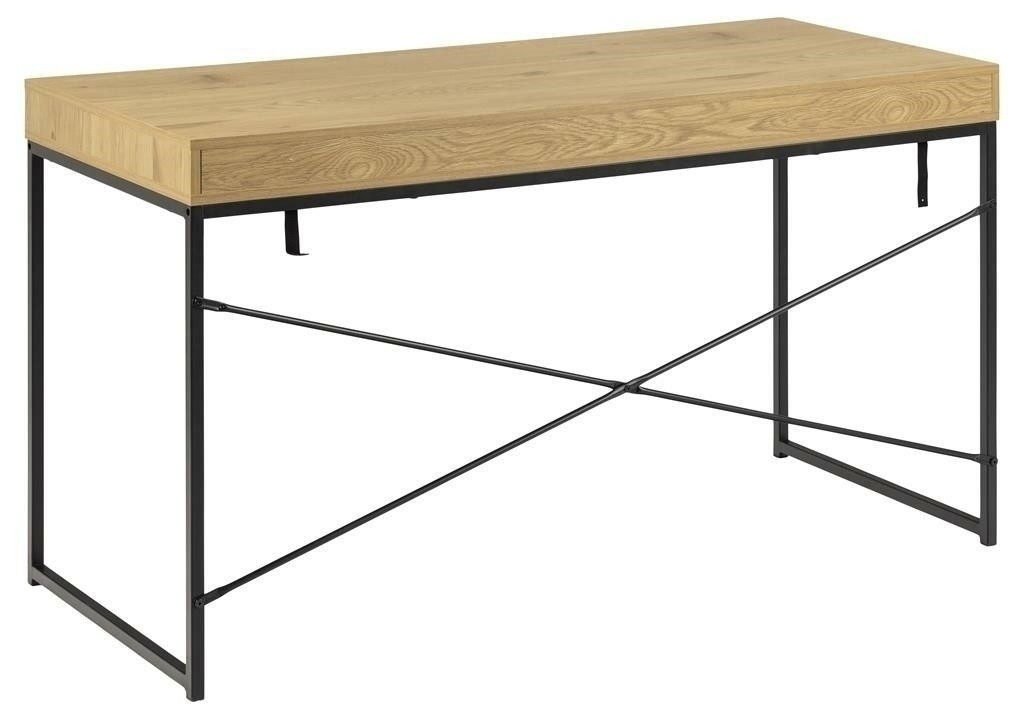 Psací stůl Seaford se zásuvkou je nábytek v minimalistickém stylu, ideální do studentského pokoje nebo domácí kanceláře. Jeho základna je vyrobena z práškově lakovaného kovu v černé barvě. Deska je vyrobena z MDF desky s dubovou dýhou. Tento model psacího stolu má pod deskou zásuvku s kovovou úchytkou a také další úložný prostor. Charakteristickým rysem jsou dva křížící se kovové prvky na zadní straně stolu. Psací stůl Seaford se zásuvkou se skvěle hodí na domácí úkoly, práci na počítači nebo vyplňování dokumentů. Počet kartonů: 1 Rozměry kartonů: 150,5x65,5x15cm Hmotnost kartonů: 31,1kg