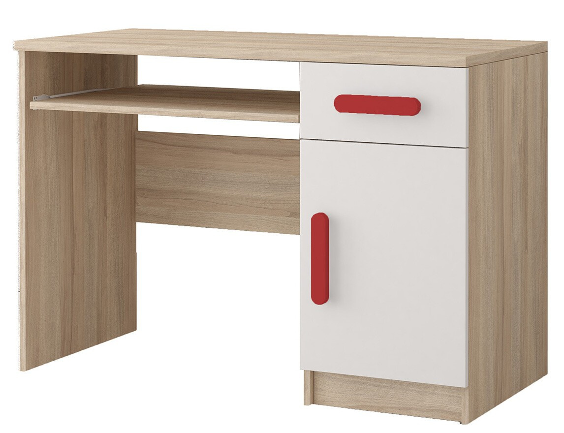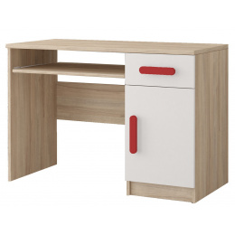 Psací stůl SMYK III - 08, Dub Sonoma/Bílá/Červená