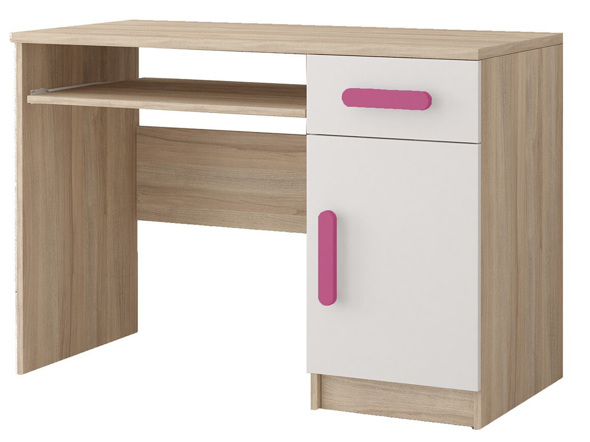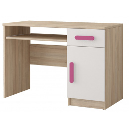 Psací stůl SMYK III - 08, Dub Sonoma/Bílá/Růžová