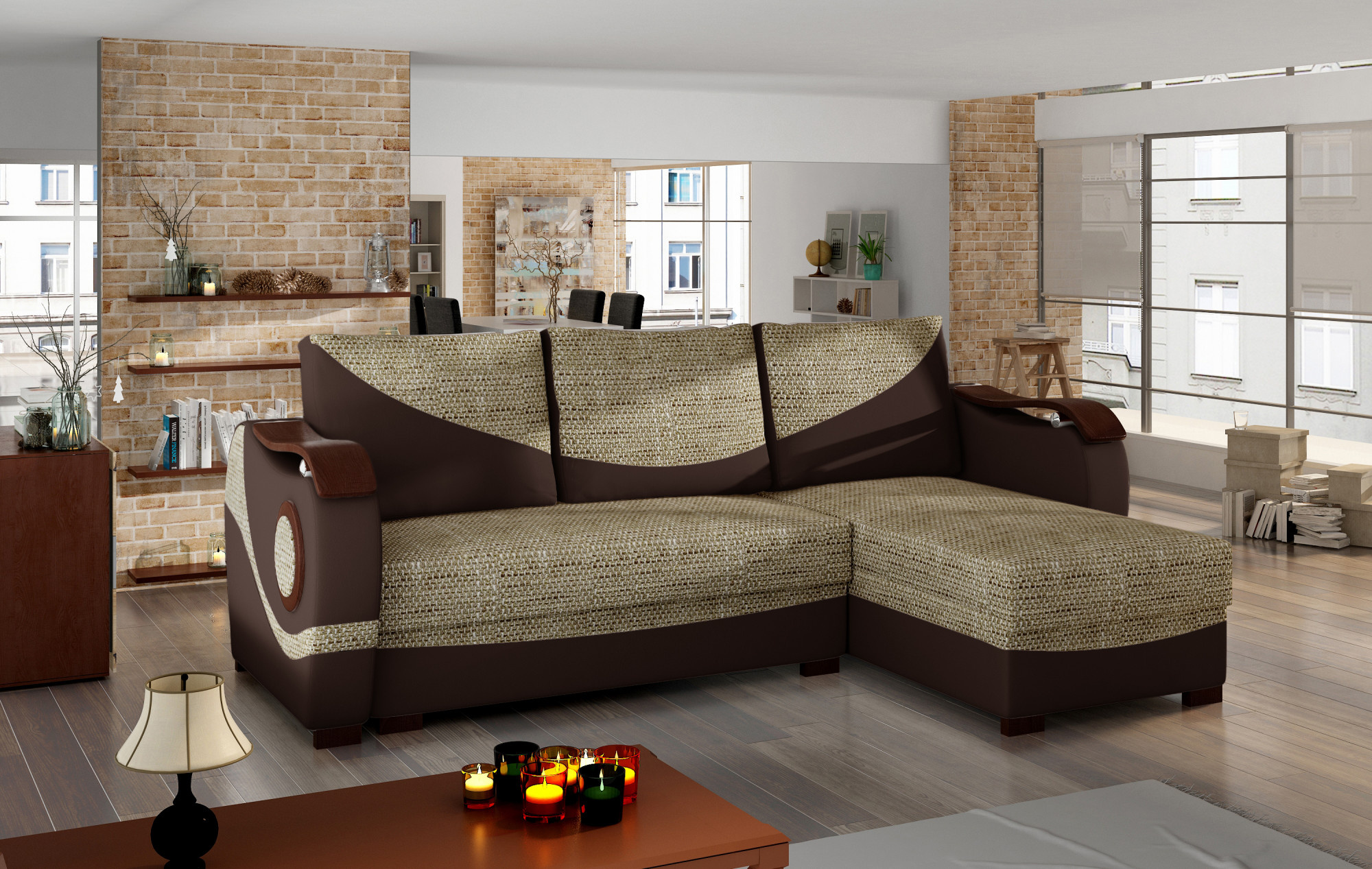 Puerto je sofistikovaná, originální a moderní rohová pohovka pro znalce originálních řešení. Nábytek o rozměrech 235 x 140 x 90 cm zaručuje prostornost a pohodlí při používání během dne, stejně jako maximální komfort a klidný spánek na ploše 195 x 125 cm v noci. Jednoduchý mechanismus rozkládání ve formě výsuvného spodku a sklápěcího opěradla umožňuje rychle přizpůsobit rohovou pohovku aktuálním potřebám. Rohová pohovka má dva prostorné úložné prostory na lůžkoviny - jeden z nich se nachází v otomanu, zatímco druhý je k dispozici po nastavení nábytku do noční funkce. Zážitek z výjimečné měkkosti je možný díky kombinaci bonelových pružin a pěny T25. Je to tato kombinace, která ovlivňuje pocit maximálního potěšení z relaxace, který nabízí náš nábytek. Mezi charakteristické rysy tohoto modelu můžeme určitě zařadit další dekorace ve formě dřevěných prvků na područkách, bocích a nohách - to vše se promítá do originálního tónu celku. Pokud byste chtěli pocítit energii, která proudí z rohu Puerto - doporučujeme vám se na něj podívat zblízka.