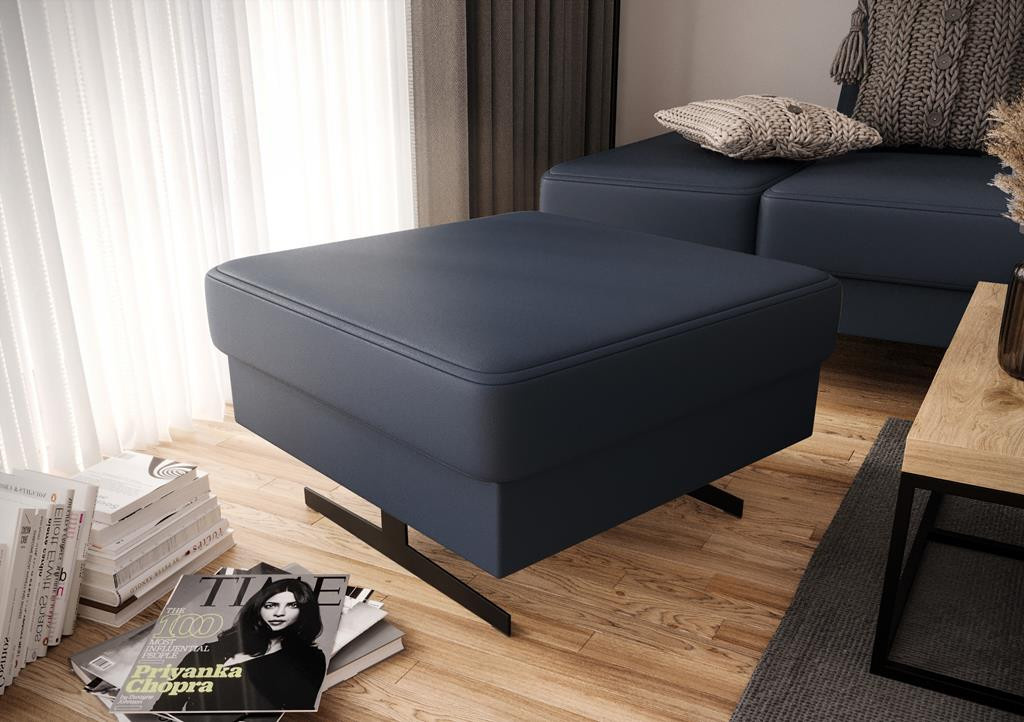 Taburet EMPORIO 70 x 70 cm přírodní kůže - Modrá kůže