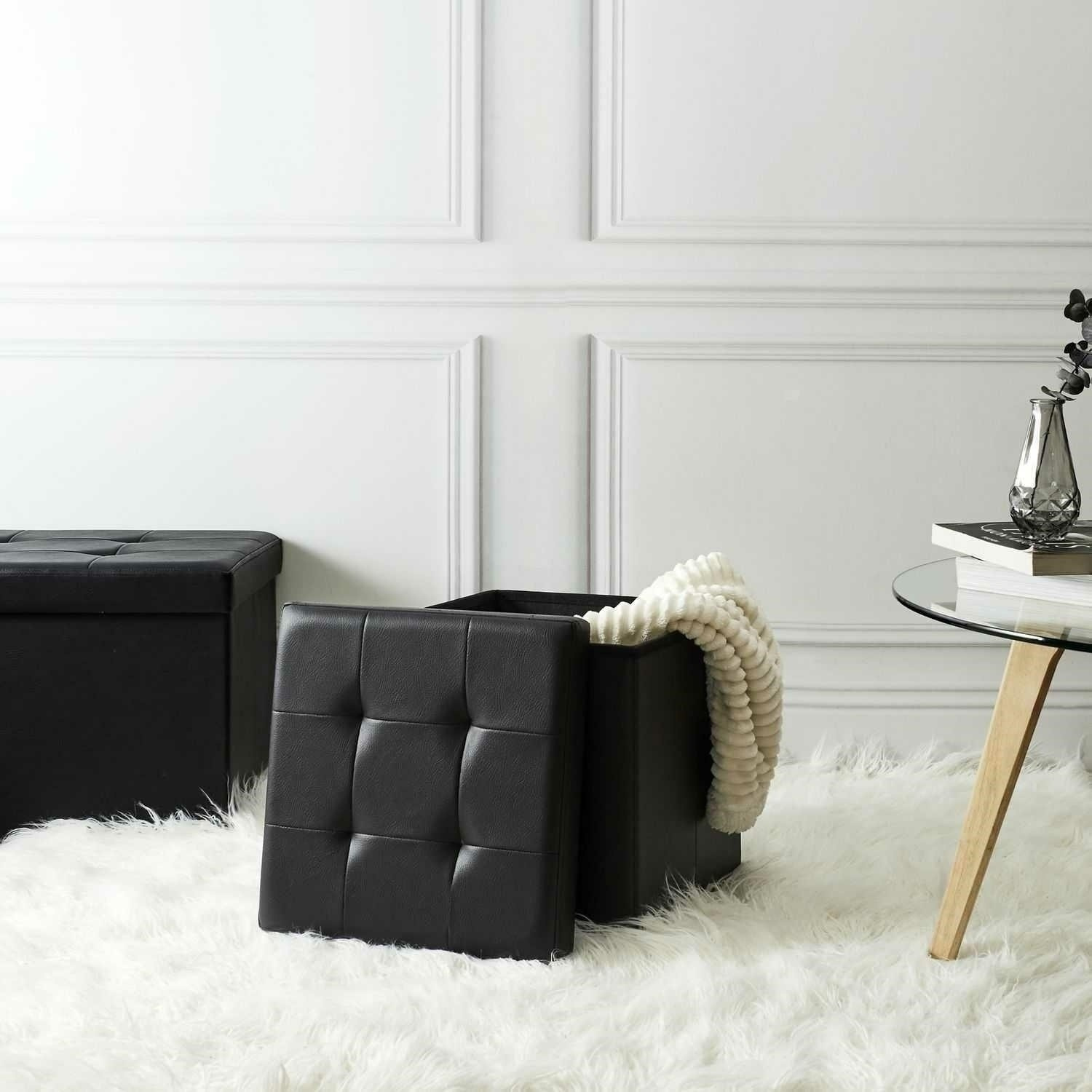 Pufa Intesi Vels je dalším modelem velmi módní kolekce skládacích sedadel. Tento neobyčejný projekt je plnohodnotná pufa, která se skvěle hodí jako další sedátko v kávovém koutku nebo v předsíni, kde ti pomůže pohodlně obout boty. Silná vysoce elastická pěna, kterou je potažena její horní část, se stará o pohodlí uživatele a poskytuje mu měkký a pružný povrch. Prvek je nejen pohodlný, ale také vypadá skvěle, což je zásluhou vkusného prošívání a prošívání. Puf bude ideálním úložným prostorem do dětského pokoje, dalším místem pro ukládání v pokoji pro mládež. To není jen kontejner na oblečení, hračky nebo polštáře. Puf je také pohodlným sedadlem. Maximální zatížení sedadla pufu je až 110 kg. Puf byl vyroben z polyesteru a eko kůže v černé barvě. Max. množství ks. v kartonu: 4 Rozměry kartonu: 37,2 x 6 x 37,2 cm