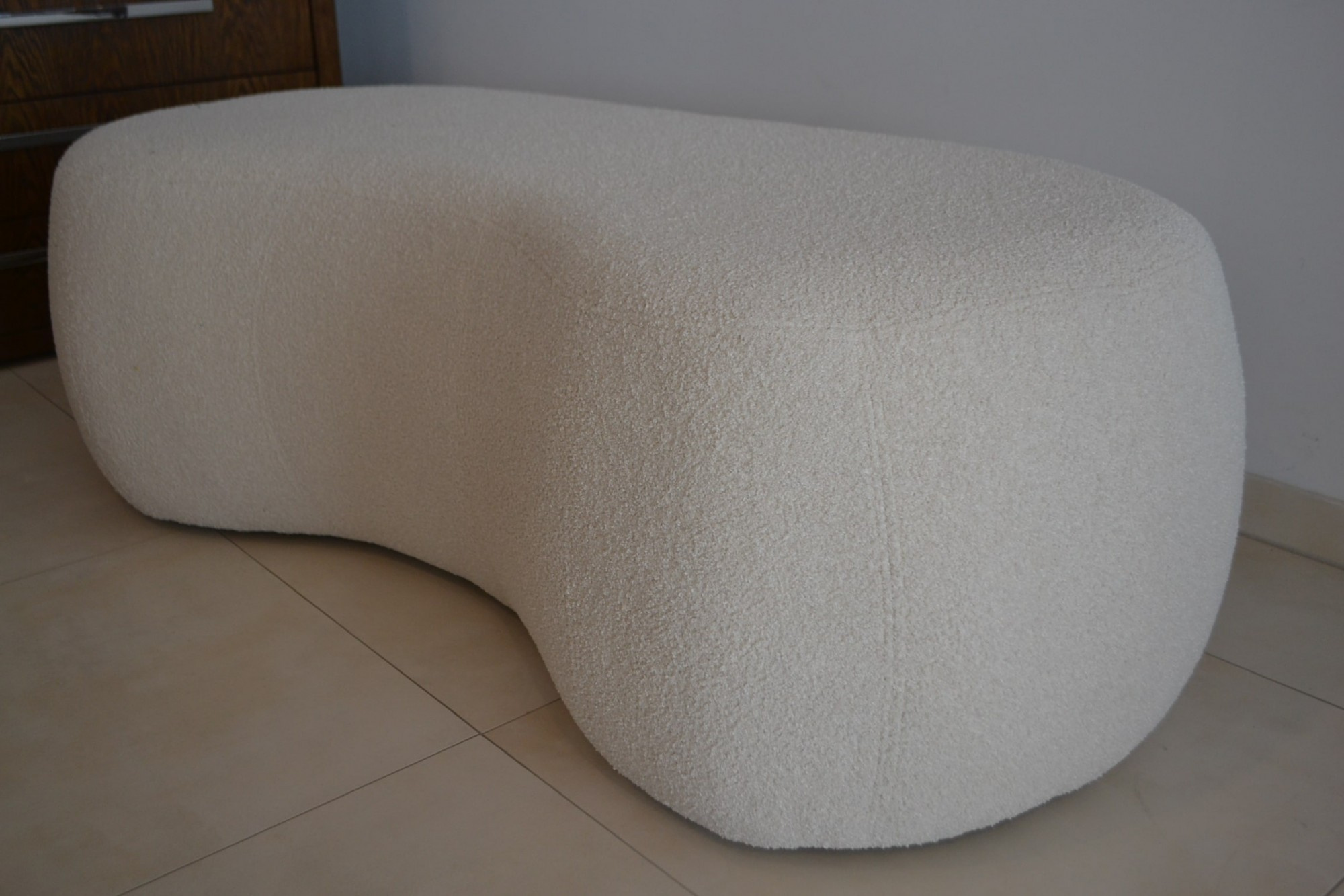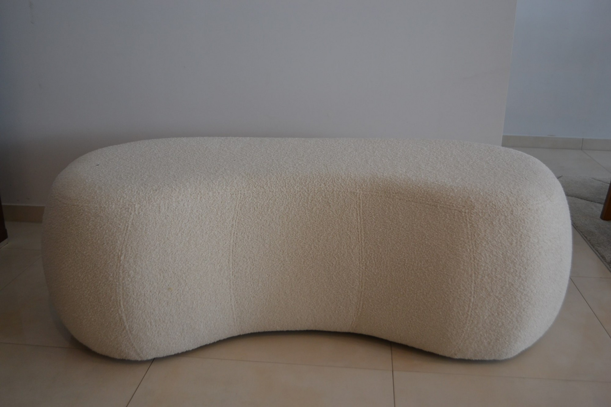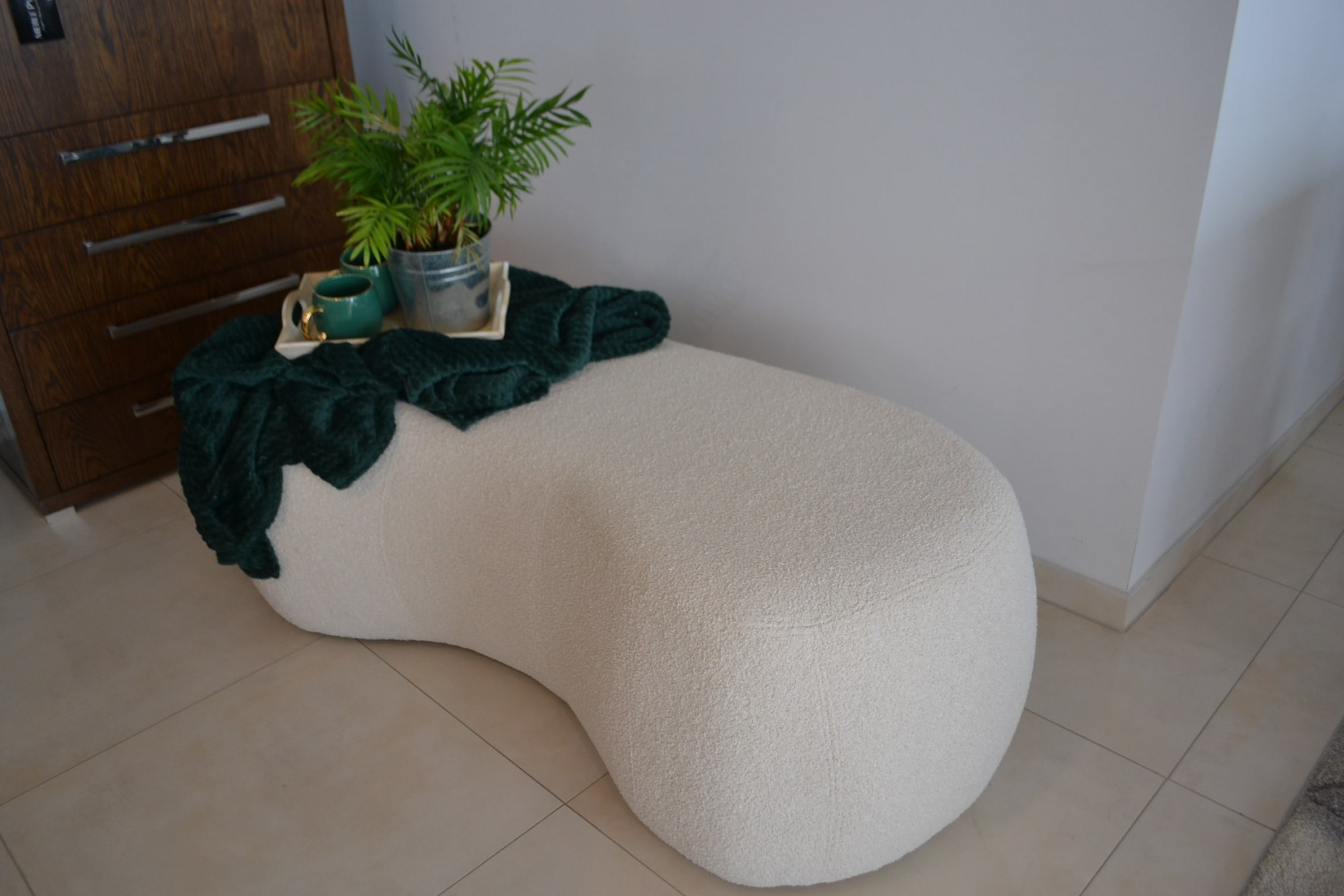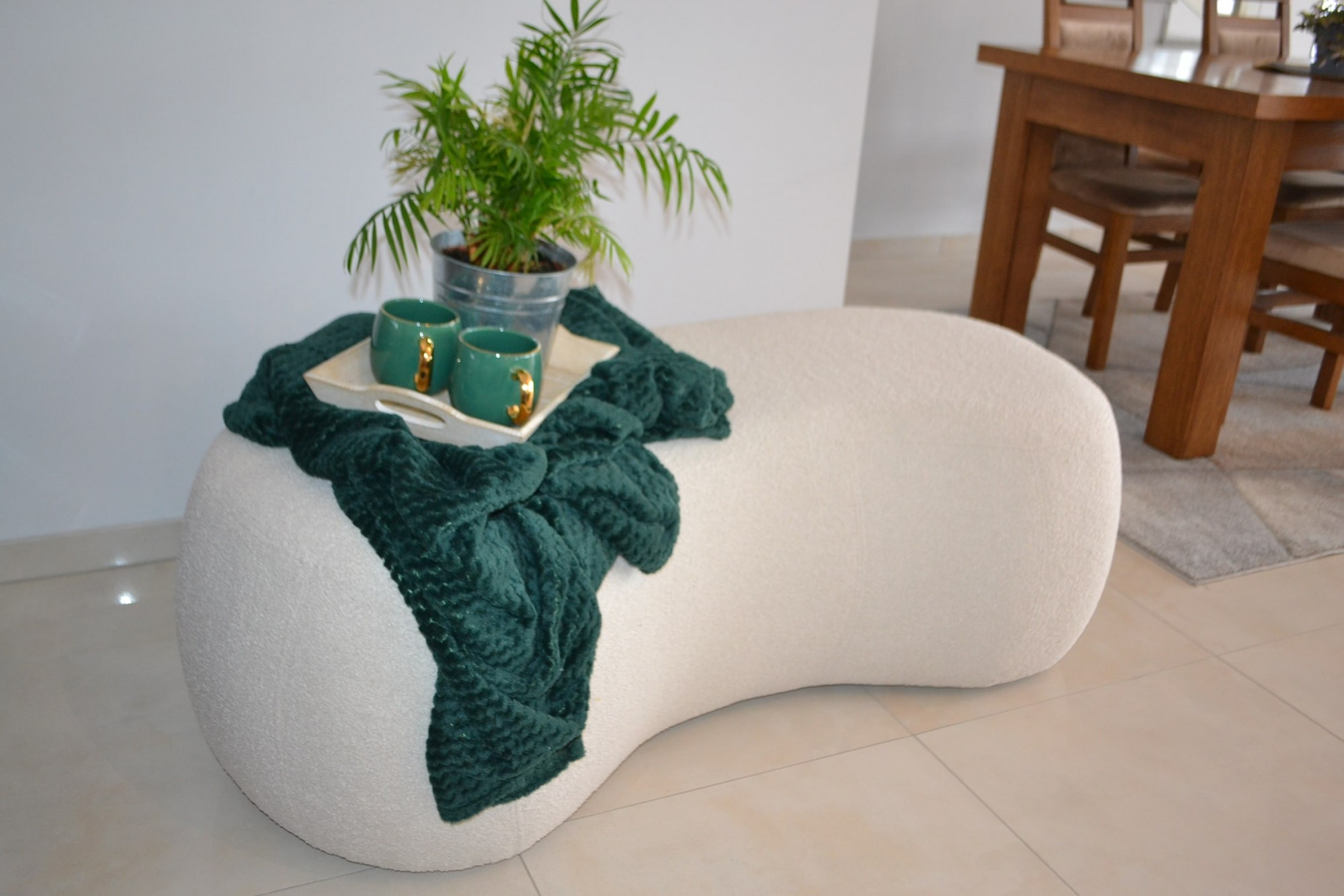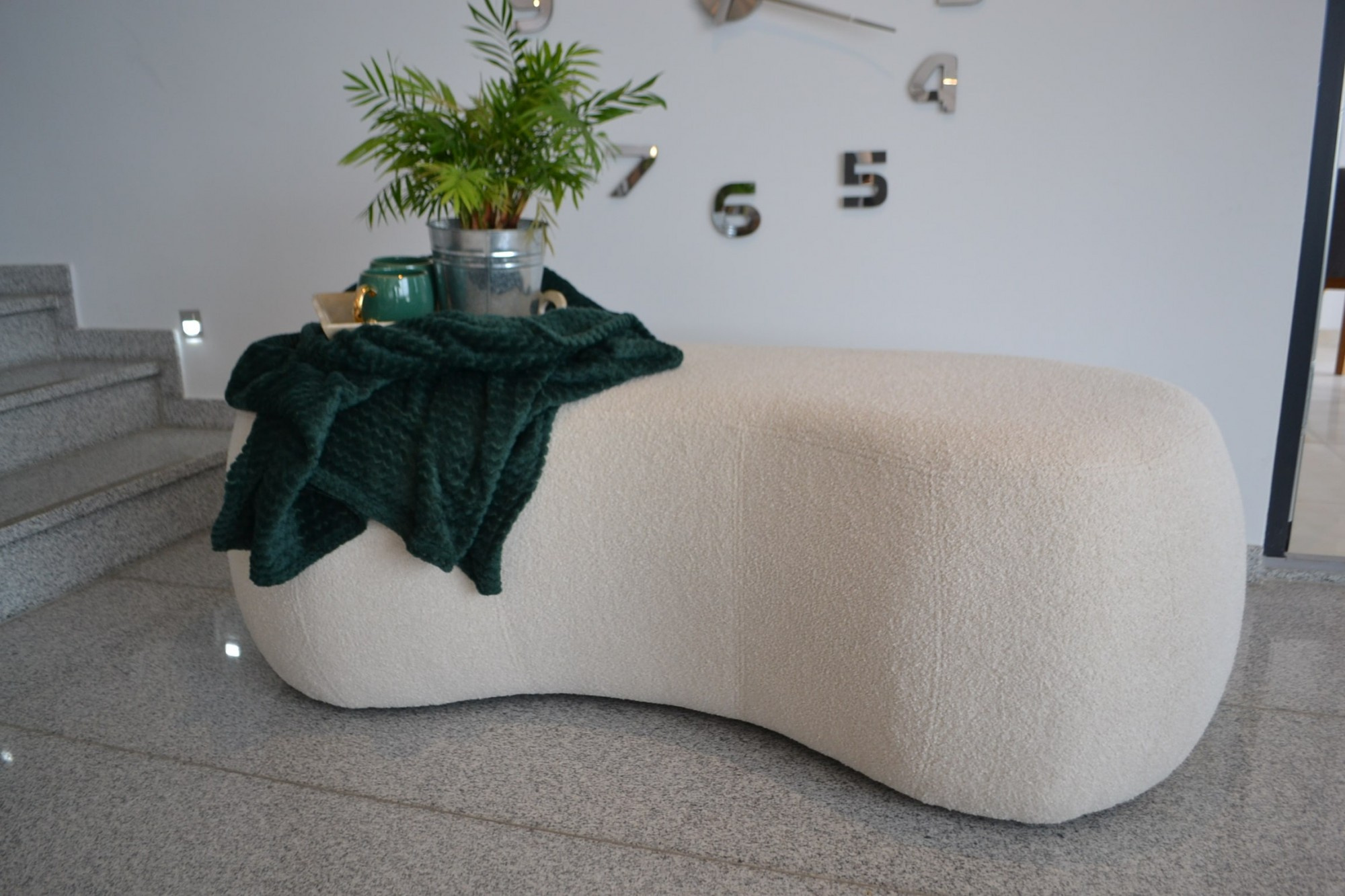 Taburet Luis se zaobleným tvarem spojuje vizuální a praktické výhody, zejména v malých místnostech. Skvěle zapadne do letošních trendů v interiérovém designu.