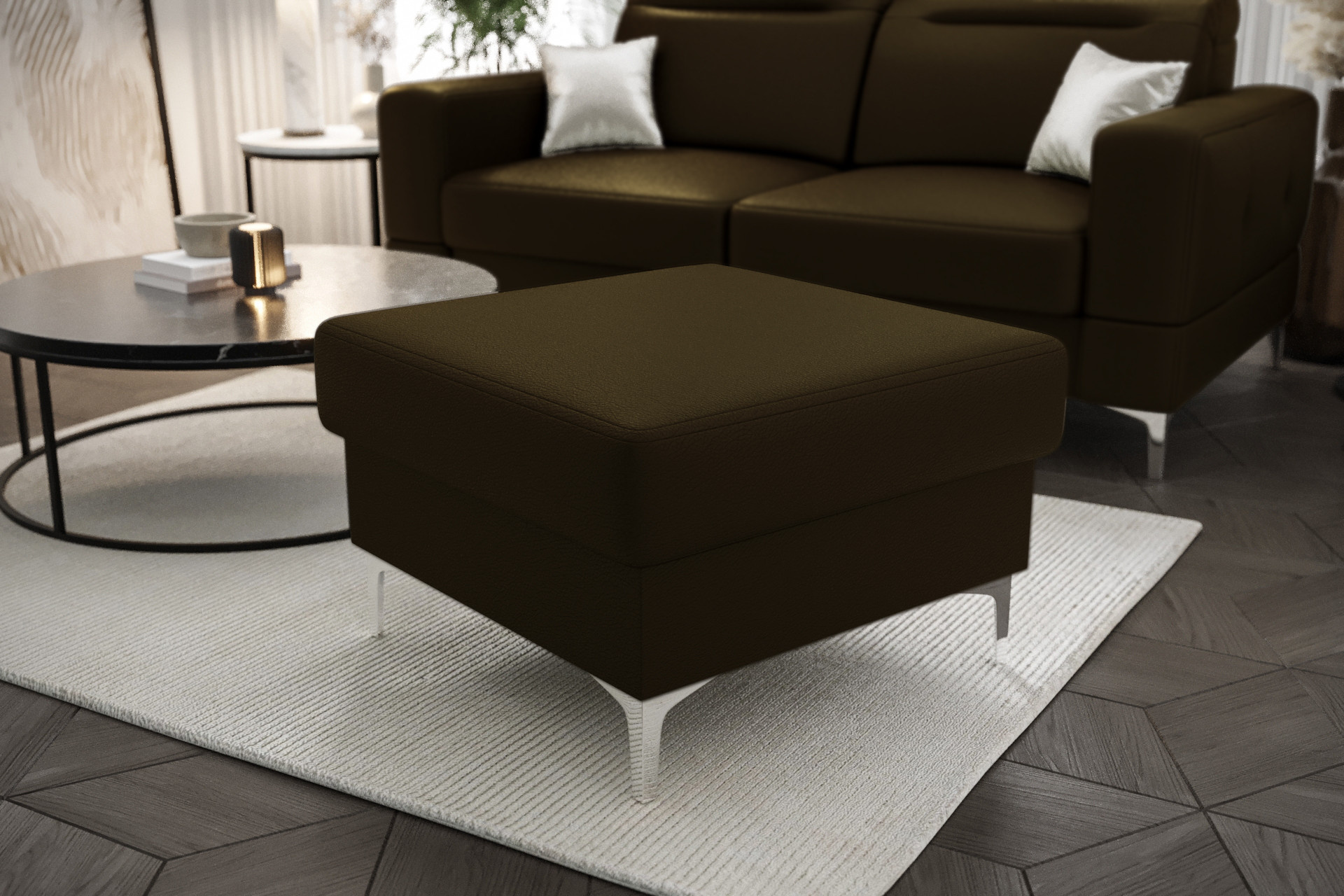 Taburet MALIBU 70 x 70 cm přírodní kůže L-10 olivově hnědá - rychlé odeslání