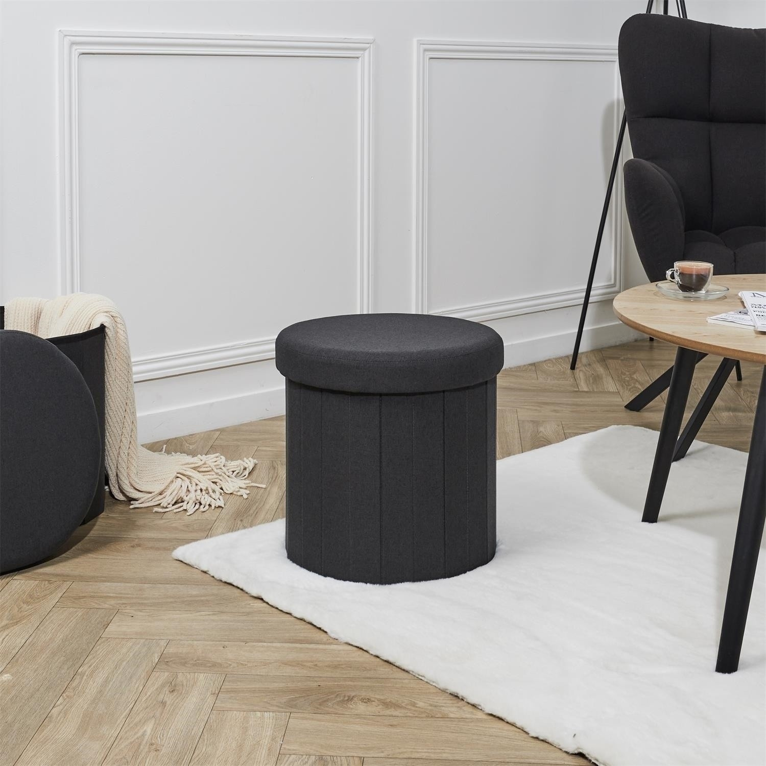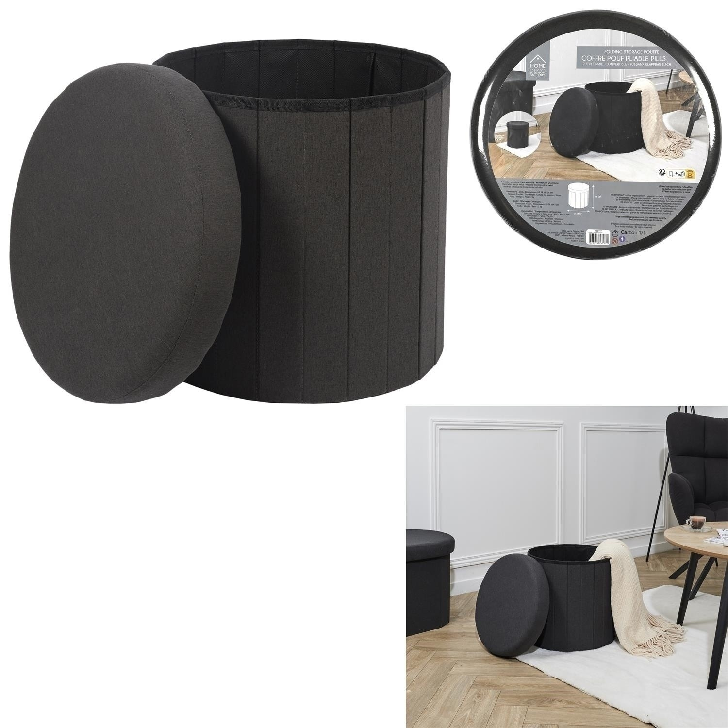 Skládací puf je ideální nábytek do menší předsíně. Stolička plní funkci nejen sedátka, ale také úložného prostoru na boty, doplňky, deky nebo polštáře a dokonce i hračky. Díky otevíratelnému sedáku můžeme do pufu schovat předměty, jejichž přítomnost na povrchu není nutná. Skládací puf je vyroben z MDF, čalounické pěny a látky 100% polyester. Skládací základna umožňuje schovat pufu, když ji dočasně nepotřebujeme používat.