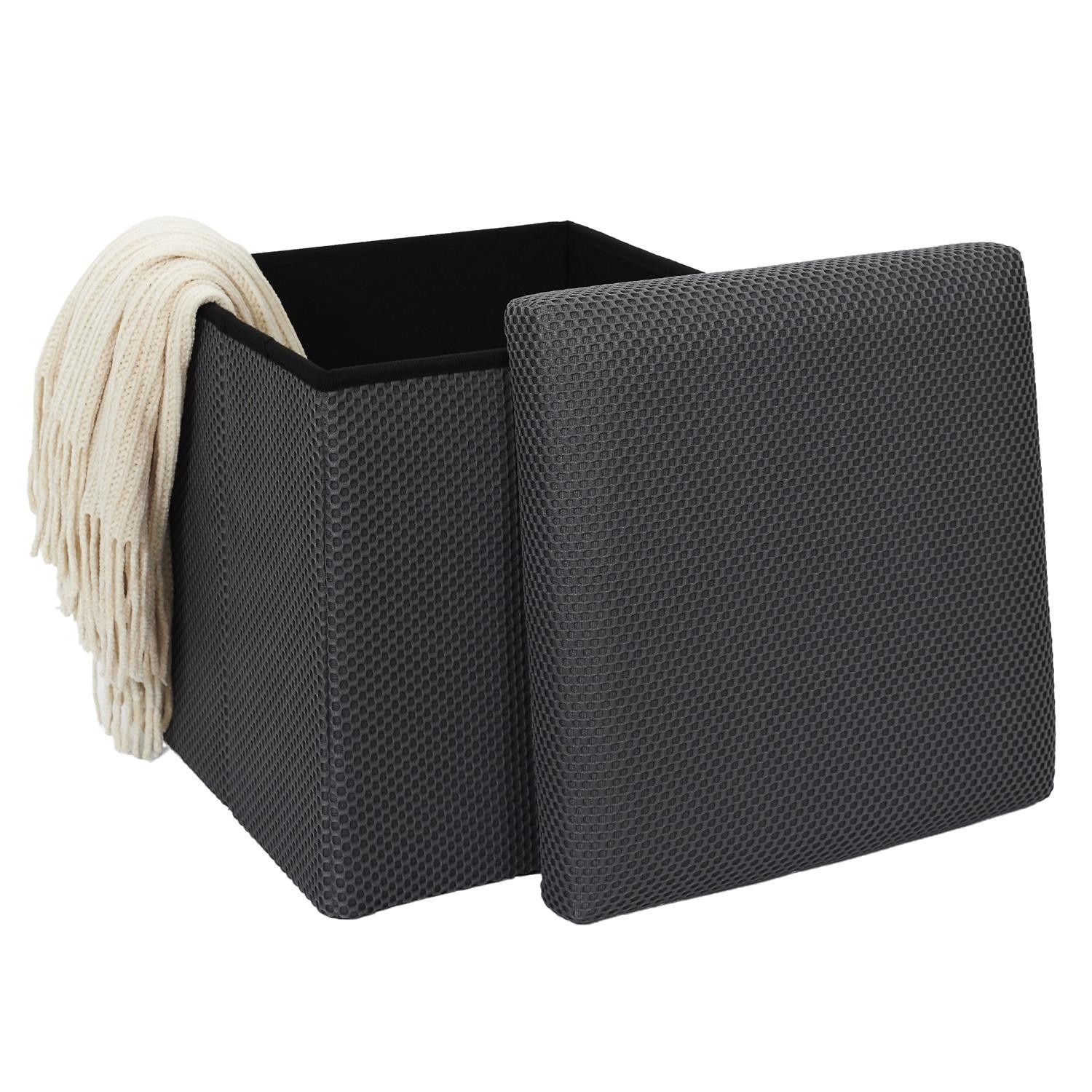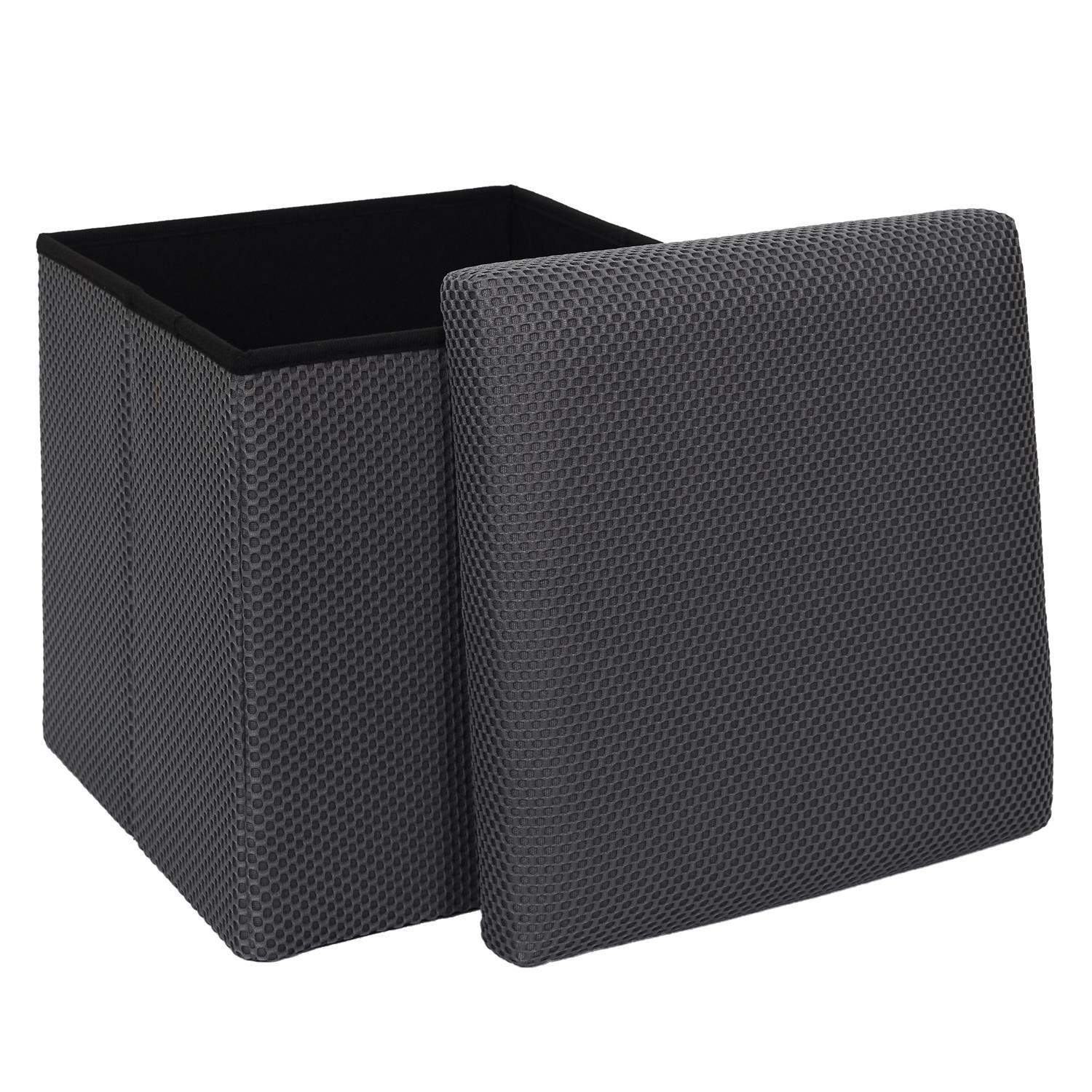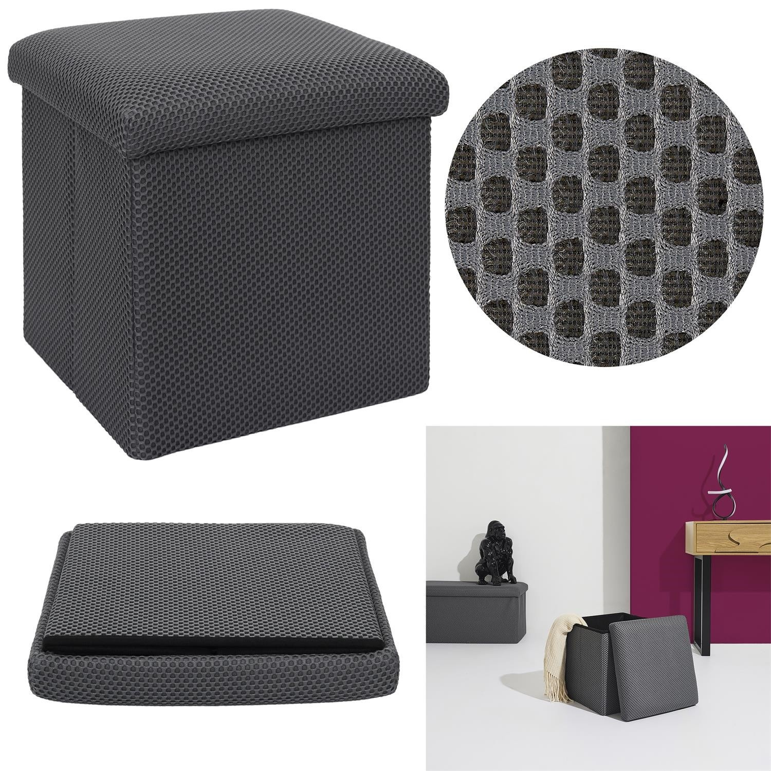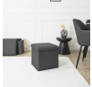 Skládací puf s úložným prostorem je nutností každého studentského bytu nebo pro osoby, které potřebují další místo k sezení a úložný prostor. Puf vyrobený z rámu z odolné MDF desky, která zaručuje maximální přípustné zatížení nábytku až do 110 kg. Puf lze složit, když ji nepoužíváme. Po rozložení nám poskytuje spoustu místa pro uložení jak menších věcí, tak i větších, jako jsou deky, boty nebo knihy. Puf byl ozdoben zajímavou trojrozměrnou tkaninou. Tkanina 100% polyester.