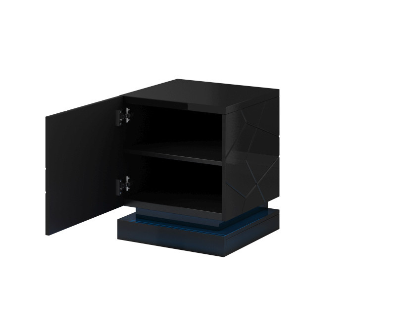 noční skříňka QIU Rozměry: š/š/h- 53cm/46cm/41,5cm Materiál Boky a čela: MDF deska lakovaná do vysokého lesku s viditelným frézováním Horní deska: MDF deska lakovaná do vysokého lesku Nohy: sokl Úchyty: čela přesahují přes horní desky Osvětlení: modré nebo RGB určené pro komodu QIU, nutno objednat zvlášť Velikost balení: balení 1/1: 61x46x28; hmotnost 16 kg