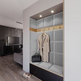 Sada Quadratta 120x160 se skládá z 19 panelů o rozměrech 40x40 cm.Čalouněný nástěnný panel Quadratta 40x40 cm je zajímavým řešením, které se hodí do každé místnosti. Vděčí za to své neobvyklé konstrukci - jeho základna je odolná a vůči deformacím rezistentní MDF deska. Byla na něj nanesena silná, třícentimetrová vrstva pěny T21. Měkká a flexibilní součást činí povrch produktu mimořádně příjemným na dotek. Díky tomu si celá věc udrží svůj krásný vzhled po dlouhou dobu a poskytne vám příjemný zážitek, když budete doma. Nástěnný panel Quadratta je doplněn moderní látkou inspirovanou semišem. Je silný, příjemný a vysoce odolný proti oděru a žmolkování. Kromě toho použitý materiál patří do skupiny voděodolných (hydrofobních) tkanin. To znamená, že jeho povrch neabsorbuje kapaliny - místo toho se na něm usazují ve formě malých kapek. Instalace čalouněných panelů je velmi jednoduchá, bez použití profesionálního vybavení. Panely se dobře kombinují s dalšími produkty z kolekce Quadratta. Každý panel lze zakoupit jako sadu nebo samostatně.