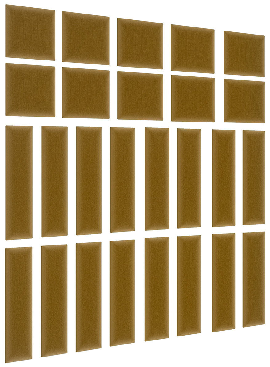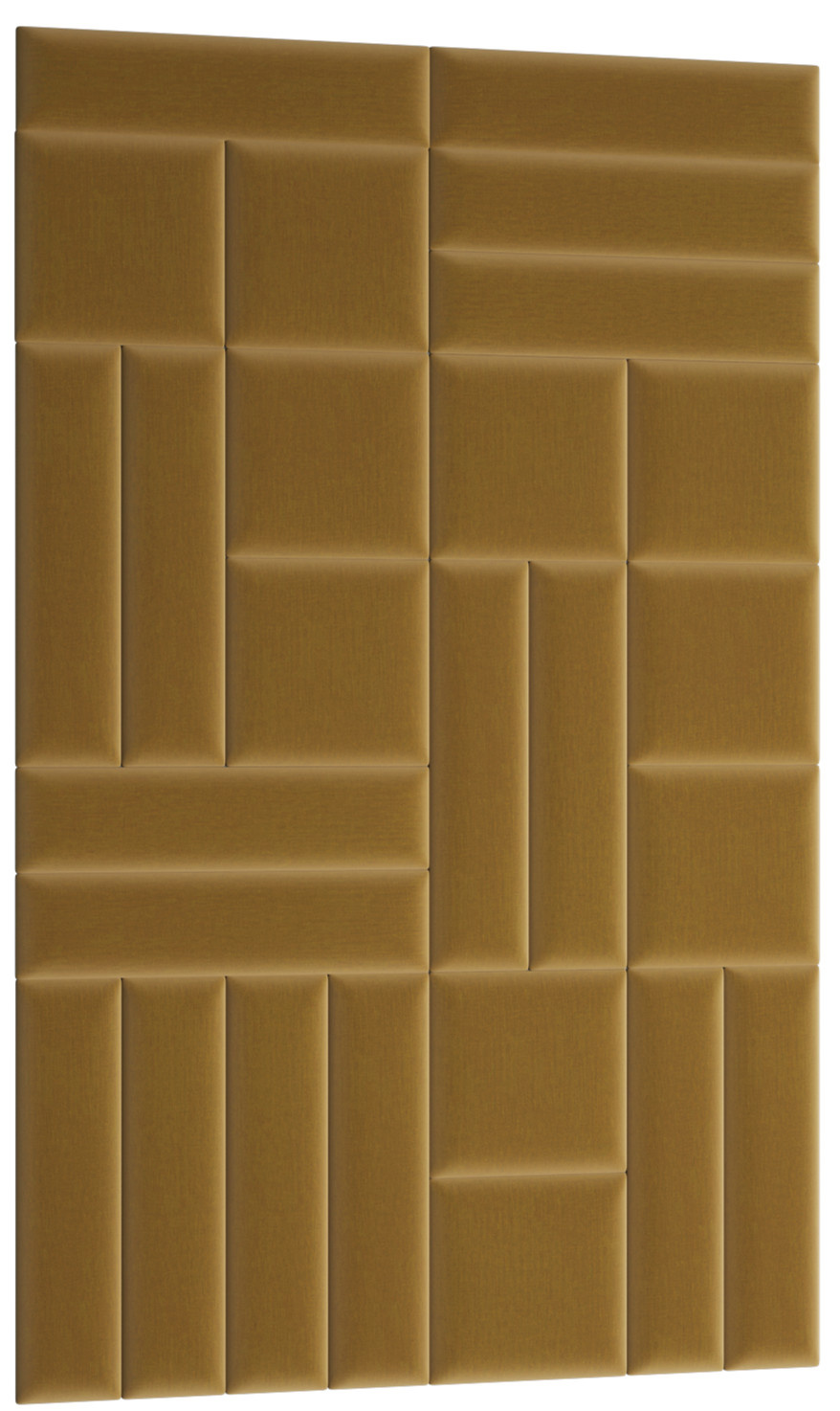 Sada Quadratta 120x195 se skládá z 26 panelů o rozměrech 30x30 (10 ks) a 60x15 (16 ks). Nástěnný panel Quadratta získává svou odolnost díky použití MDF desky. Tato součást je známá svou vysokou odolností vůči mechanickému poškození a svou značně nízkou hmotností, díky čemuž nezatěžuje stěnu. Není tedy divu, že náš produkt dokáže odolat prakticky jakékoli domácí situaci! Na základnu byla umístěna 3 cm silná vrstva pěny T21. To způsobilo, že panel je příjemně měkký a flexibilní. Můžete jej tedy úspěšně použít jako pohodlnou opěrku hlavy, která pěkně doplňuje vaši postel a činí z ní potěšení opřít se o dosud nepohodlnou zeď. Čalouněné panely Quadratta jsou potaženy moderní látkou ve stylu semiše. Materiál se vyznačuje nejen příjemnou texturou na dotek, ale také vysokou odolností a odolností vůči oděru, tření a žmolkování. Kromě toho je vyroben pomocí hydrofobní technologie. To znamená, že neabsorbuje tekutiny, což vám usnadňuje udržovat celou věc hygienicky čistou. Instalace čalouněných panelů je rychlá a snadná, bez použití profesionálního vybavení. Panel vytvoří krásnou kombinaci s dalšími kousky z kolekce Quadratta. Každý panel lze zakoupit jako sadu nebo samostatně.