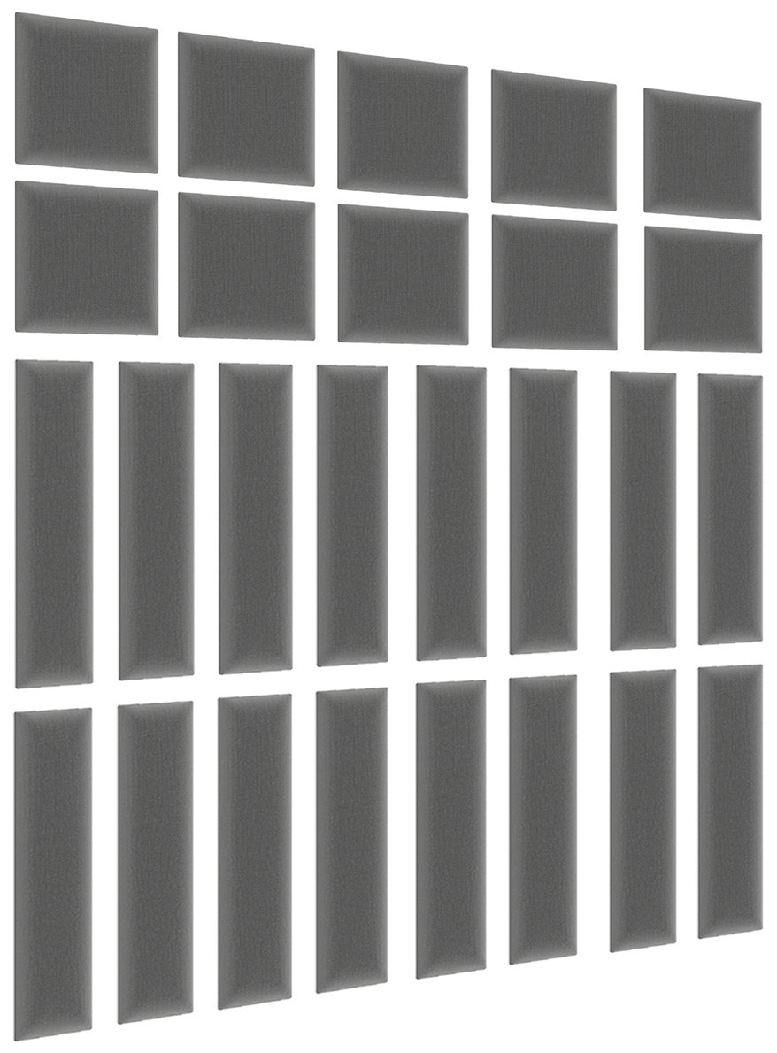 Sada Quadratta 120x195 se skládá z 26 panelů o rozměrech 30x30 (10 ks) a 60x15 (16 ks). Nástěnný panel Quadratta získává svou odolnost díky použití MDF desky. Tato součást je známá svou vysokou odolností vůči mechanickému poškození a svou značně nízkou hmotností, díky čemuž nezatěžuje stěnu. Není tedy divu, že náš produkt dokáže odolat prakticky jakékoli domácí situaci! Na základnu byla umístěna 3 cm silná vrstva pěny T21. To způsobilo, že panel je příjemně měkký a flexibilní. Můžete jej tedy úspěšně použít jako pohodlnou opěrku hlavy, která pěkně doplňuje vaši postel a činí z ní potěšení opřít se o dosud nepohodlnou zeď. Čalouněné panely Quadratta jsou potaženy moderní látkou ve stylu semiše. Materiál se vyznačuje nejen příjemnou texturou na dotek, ale také vysokou odolností a odolností vůči oděru, tření a žmolkování. Kromě toho je vyroben pomocí hydrofobní technologie. To znamená, že neabsorbuje tekutiny, což vám usnadňuje udržovat celou věc hygienicky čistou. Instalace čalouněných panelů je rychlá a snadná, bez použití profesionálního vybavení. Panel vytvoří krásnou kombinaci s dalšími kousky z kolekce Quadratta. Každý panel lze zakoupit jako sadu nebo samostatně.
