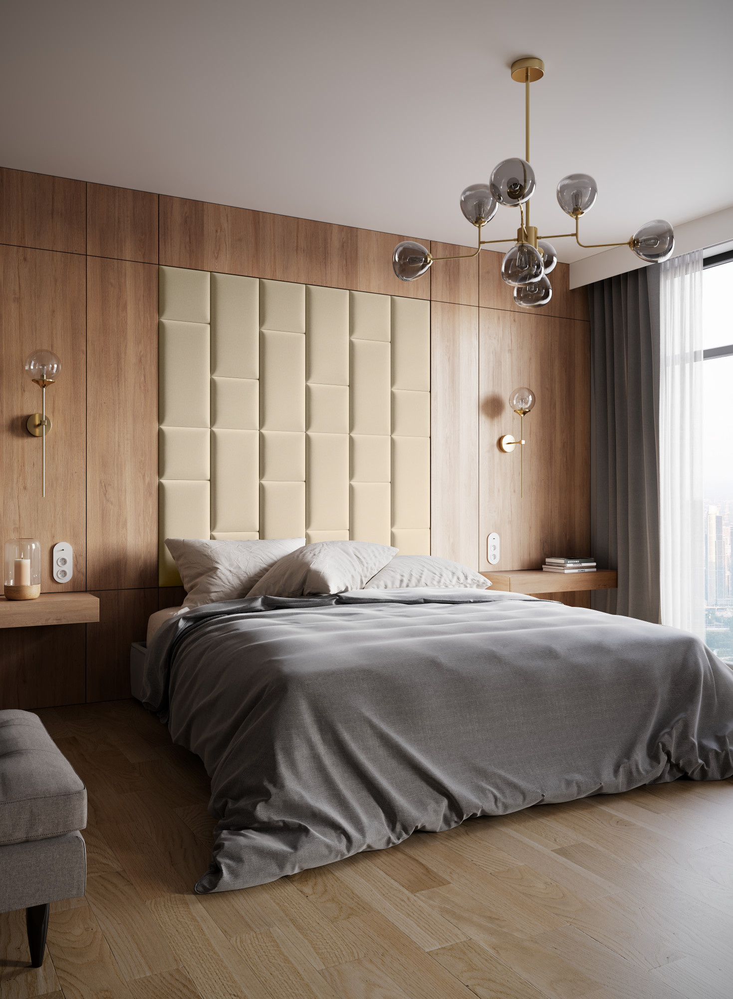 Sada Quadratta 180x180 se skládá z 24 panelů o rozměrech 30x30 (12 ks) a 60x30 (12 ks). Čalouněný nástěnný panel Quadratta je bezpochyby módním a zajímavým řešením. Má základnu vyrobenou z pevné a odolné MDF desky, takže se nedeformuje ani po dlouhé době. Povrch výrobku je zakončen třícentimetrovou vrstvou pěny T21. Toto řešení nejenže činí celek výjimečně atraktivním, ale je také příjemné na dotek. Struktura je dokončena příjemnou na dotek látkou inspirovanou semišem. Jeho masitý povrch je mimořádně příjemný a zároveň odolný proti oděru a žmolkování, což umožňuje panelu dlouhodobě si zachovat svůj krásný vzhled. Kromě toho je látka charakteristická použitím moderní technologie odpuzující vodu (hydrofobní). Panely se snadno instalují bez použití profesionálního vybavení, lze je kombinovat a míchat s dalšími kusy z kolekce Quadratta. Každý panel lze zakoupit jako sadu nebo samostatně.