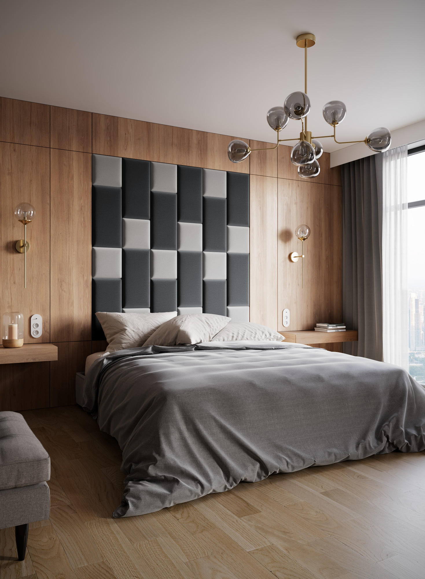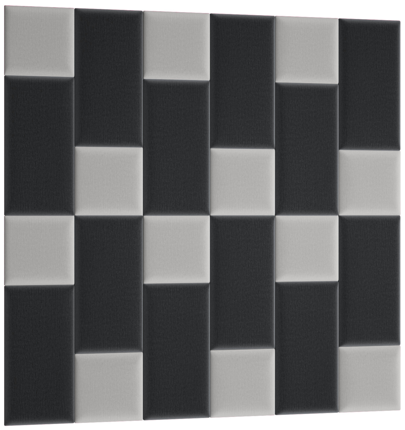Sada Quadratta 180x180 se skládá z 24 panelů o rozměrech 30x30 (12 ks) a 60x30 (12 ks). Čalouněný nástěnný panel Quadratta je bezpochyby módním a zajímavým řešením. Má základnu vyrobenou z pevné a odolné MDF desky, takže se nedeformuje ani po dlouhé době. Povrch výrobku je zakončen třícentimetrovou vrstvou pěny T21. Toto řešení nejenže činí celek výjimečně atraktivním, ale je také příjemné na dotek. Struktura je dokončena příjemnou na dotek látkou inspirovanou semišem. Jeho masitý povrch je mimořádně příjemný a zároveň odolný proti oděru a žmolkování, což umožňuje panelu dlouhodobě si zachovat svůj krásný vzhled. Kromě toho je látka charakteristická použitím moderní technologie odpuzující vodu (hydrofobní). Panely se snadno instalují bez použití profesionálního vybavení, lze je kombinovat a míchat s dalšími kusy z kolekce Quadratta. Každý panel lze zakoupit jako sadu nebo samostatně.
