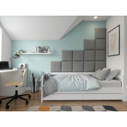 Quadratta 200x160 sada se skládá z 12 panelů o velikosti 40x40. Čalouněný nástěnný panel Quadratta je bezpochyby módním a zajímavým řešením. Má základnu vyrobenou z pevné a odolné MDF desky, takže se nedeformuje ani po dlouhé době. Povrch výrobku je zakončen třícentimetrovou vrstvou pěny T21. Toto řešení nejenže činí celek výjimečně atraktivním, ale je také příjemné na dotek. Struktura je dokončena příjemnou na dotek látkou inspirovanou semišem. Jeho masitý povrch je mimořádně příjemný a zároveň odolný proti oděru a žmolkování, což umožňuje panelu dlouhodobě si zachovat svůj krásný vzhled. Kromě toho je látka charakteristická použitím moderní technologie odpuzující vodu (hydrofobní). Panely se snadno instalují bez použití profesionálního vybavení, lze je kombinovat a míchat s dalšími kusy z kolekce Quadratta. Každý panel lze zakoupit jako sadu nebo samostatně.