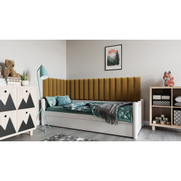 Sada Quadratta 210x90x60 se skládá z 20 panelů o rozměrech 60x15.Nástěnný panel Quadratta 60x15 cm získává svou odolnost díky použití MDF desky. Tato součást je známá svou vysokou odolností vůči mechanickému poškození a svou značně nízkou hmotností, díky čemuž nezatěžuje stěnu. Není tedy divu, že náš produkt dokáže odolat prakticky jakékoli domácí situaci! Na základnu byla umístěna 3 cm silná vrstva pěny T21. To způsobilo, že panel je příjemně měkký a flexibilní. Můžete jej tedy úspěšně použít jako pohodlnou opěrku hlavy, která pěkně doplňuje vaši postel a činí z ní potěšení opřít se o dosud nepohodlnou zeď. Čalouněné panely Quadratta jsou potaženy moderní látkou ve stylu semiše. Materiál se vyznačuje nejen příjemnou texturou na dotek, ale také vysokou odolností a odolností vůči oděru, tření a žmolkování. Kromě toho je vyroben pomocí hydrofobní technologie. To znamená, že neabsorbuje tekutiny, což vám usnadňuje udržovat celou věc hygienicky čistou. Instalace čalouněných panelů je rychlá a snadná, bez použití profesionálního vybavení. Panel vytvoří krásnou kombinaci s dalšími kousky z kolekce Quadratta. Každý panel lze zakoupit jako sadu nebo samostatně.