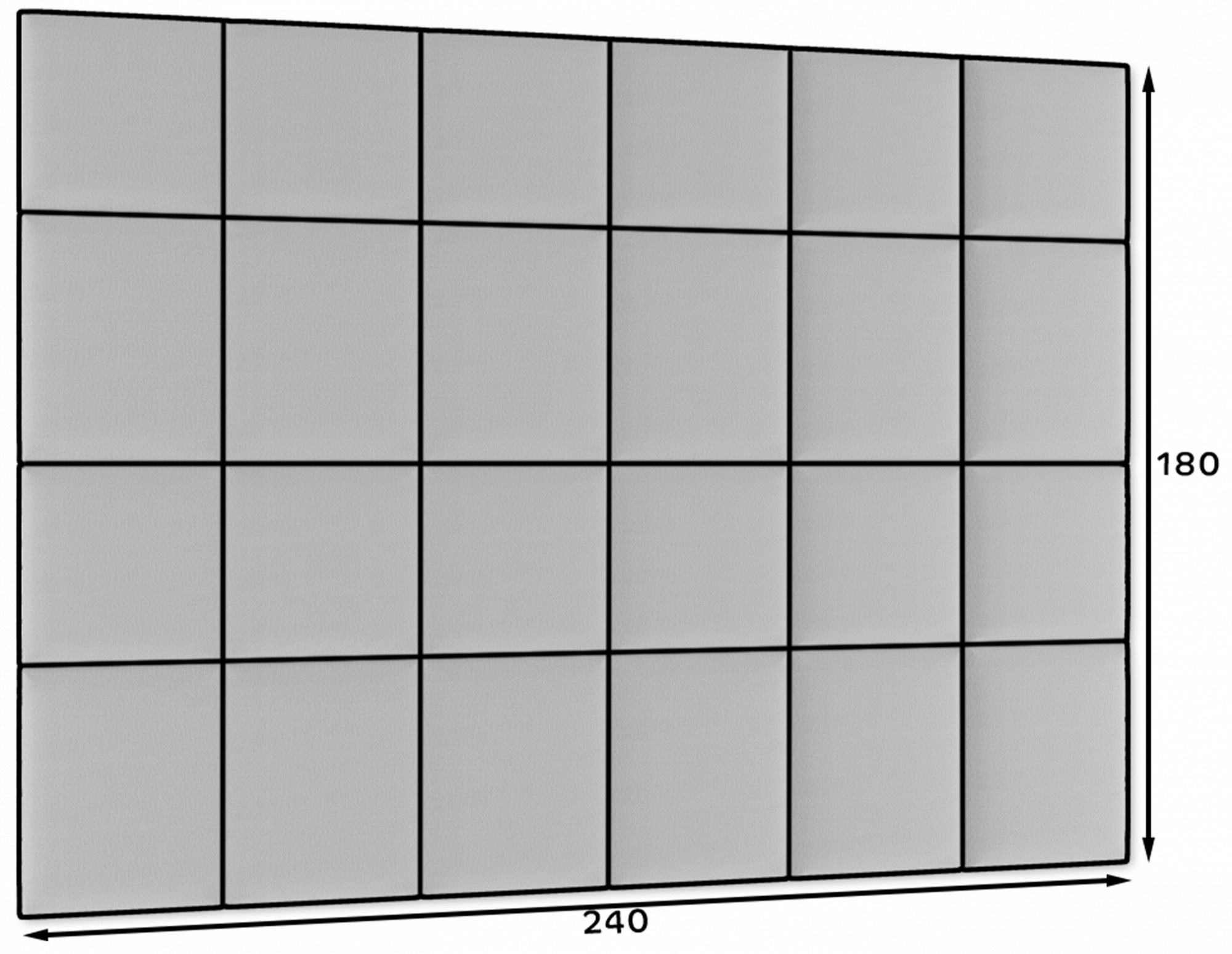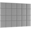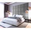 Sada Quadratta 240x180 se skládá z 24 panelů o rozměrech 40x40 (12 ks) a 50x40 (12 ks). Panel Quadrattawall má základnu vyrobenou z MDF desky. Použitá součást je lehká, aby nezatěžovala stěnu, a vysoce odolná, aby se zabránilo mechanickému poškození. Základna je pokryta 3 cm silnou vrstvou pěny T21. Materiál je příjemný na dotek a flexibilní, takže panel je ideální jako opěrka hlavy nebo boční panel pro vaši postel. Jeho povrch jemně podepře vaše záda, poskytne vám potřebné pohodlí a bezpečí při sezení. Čalouněné panely Quadratta jsou potaženy stylovou látkou připomínající semiš. Jeho povrch je velmi příjemný na dotek a zároveň odolný vůči oděru a tření. Navíc bylo celé vyrobeno s použitím technologie odpuzující vodu. Čalouněné panely jsou velmi snadno instalovatelné a nevyžadují použití profesionálního vybavení. Perfektně se kombinují s dalšími kousky z kolekce Quadratta. Každý panel lze zakoupit jako sadu nebo samostatně.