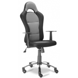 Solidní provedení, snadná montáž.Sedák a opěradlo z membránové tkaniny.Pneumatický teleskop regulace dolů/nahoru.Volné naklánění křesla dozadu, možnost blokace.Regulace síly odporu naklápění sedadla.Celá sada rozložena a zabalena v originální krabici.Uvnitř balení se nachází návod k montáži.Rozměry: - šířka opěradla: 45 cm - šířka včetně područek: 60 cm - výška opěradla: 73 cm - hloubka sedáku: 47 cm - výška křesla: 116-125 cm Barva: černá/šedá
