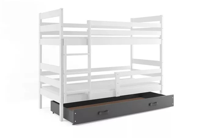 Dětská patrová postel ERYK se šuplíkem 90x200 cm, včetně matrací, Bílá/Grafit