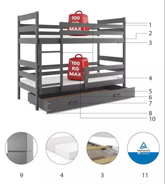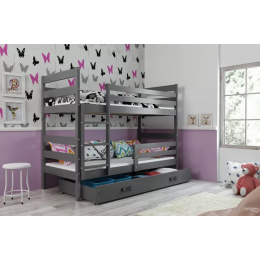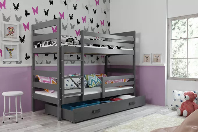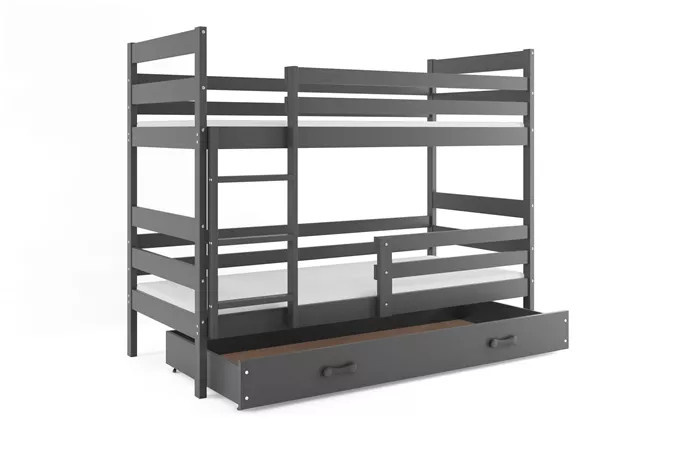 Dětská patrová postel ERYK se šuplíkem 90x200 cm, včetně matrací, Grafit/Grafit