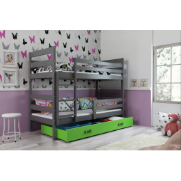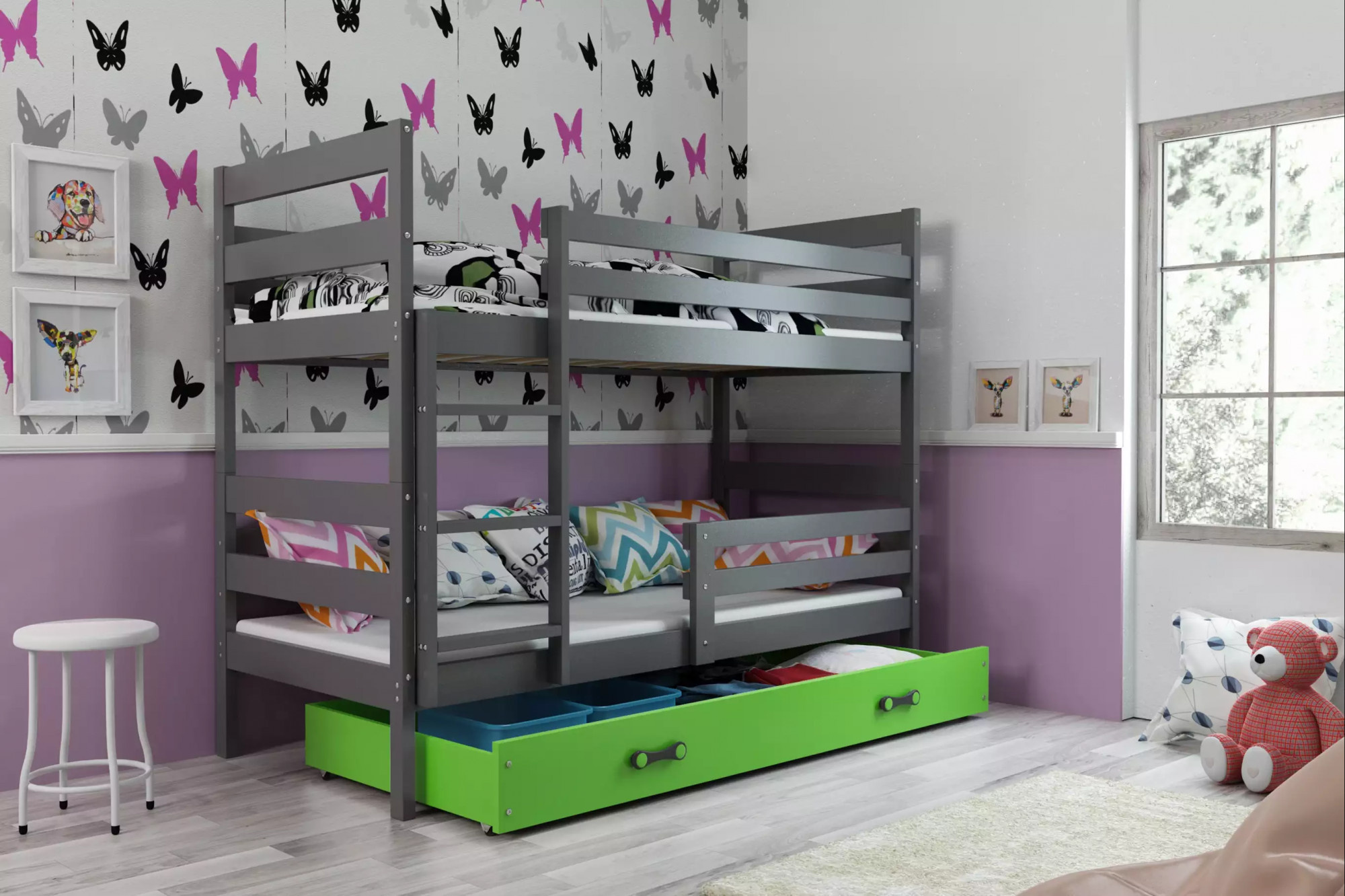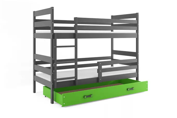 Dětská patrová postel ERYK se šuplíkem 90x200 cm, bez matrace, Grafit/Zelená
