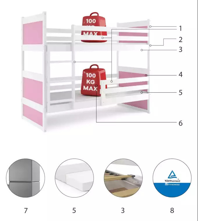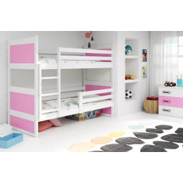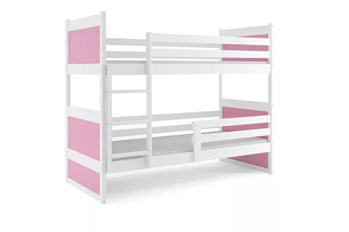 Dětská patrová postel RICO 90x200 cm, včetně matrací, Bílá/Růžová