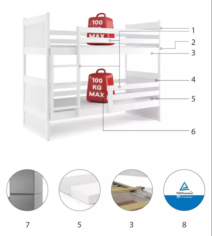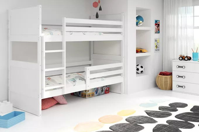 Dětská patrová postel RICO 90x200 cm, včetně matrací, Bílá/Bílá