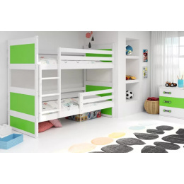 Dětská patrová postel RICO 90x200 cm, včetně matrací, Bílá/Zelená