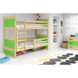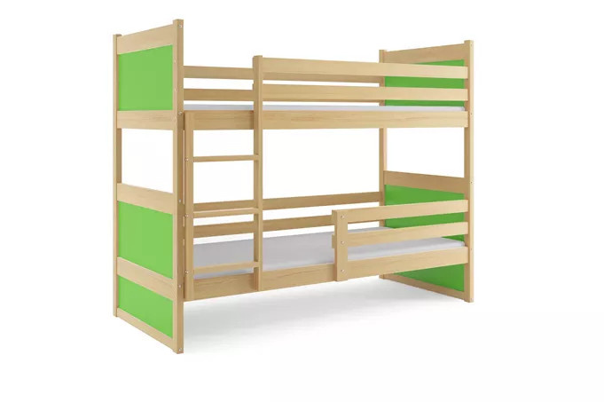 Dětská patrová postel RICO 90x200 cm, včetně matrací, Přírodní/Zelená