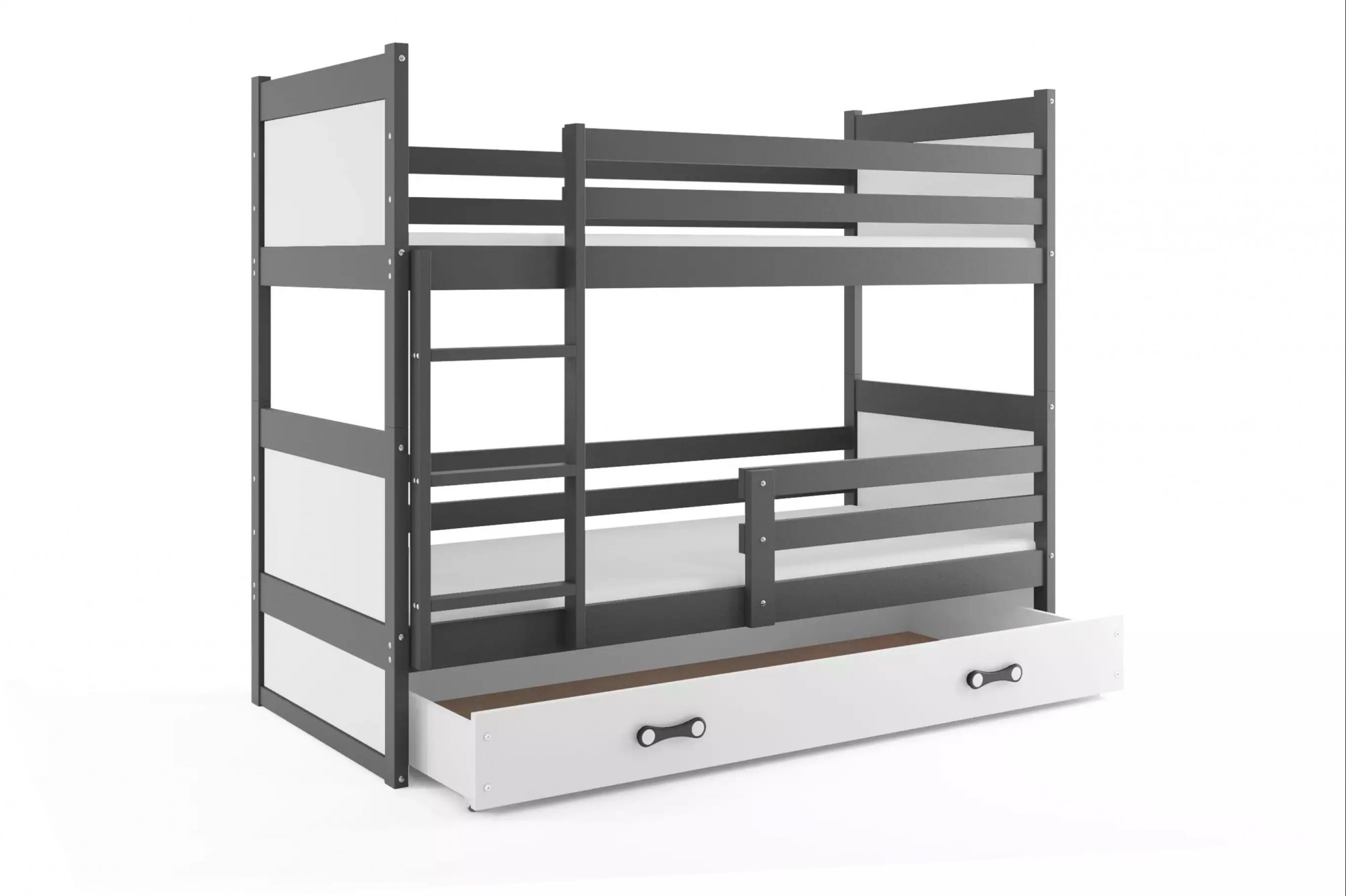 Dětská patrová postel RICO se šuplíkem 90x200 cm, včetně matrací, Grafit/Bílá