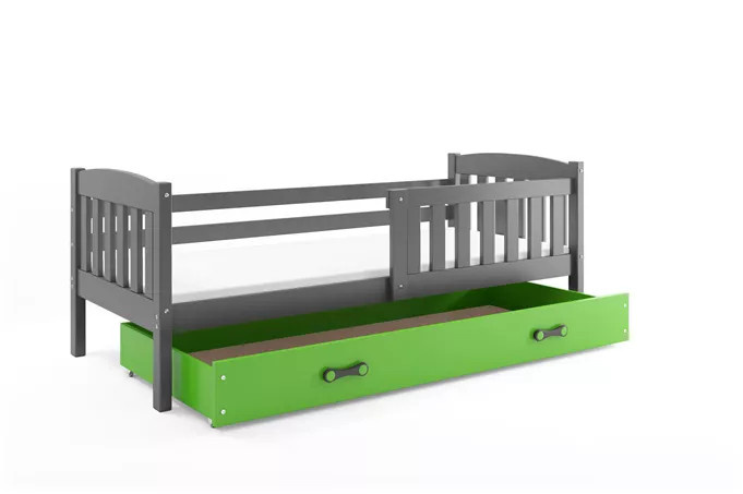 Dětská postel KUBUS 80x190 cm se šuplíkem, bez matrace, Grafit/Zelená