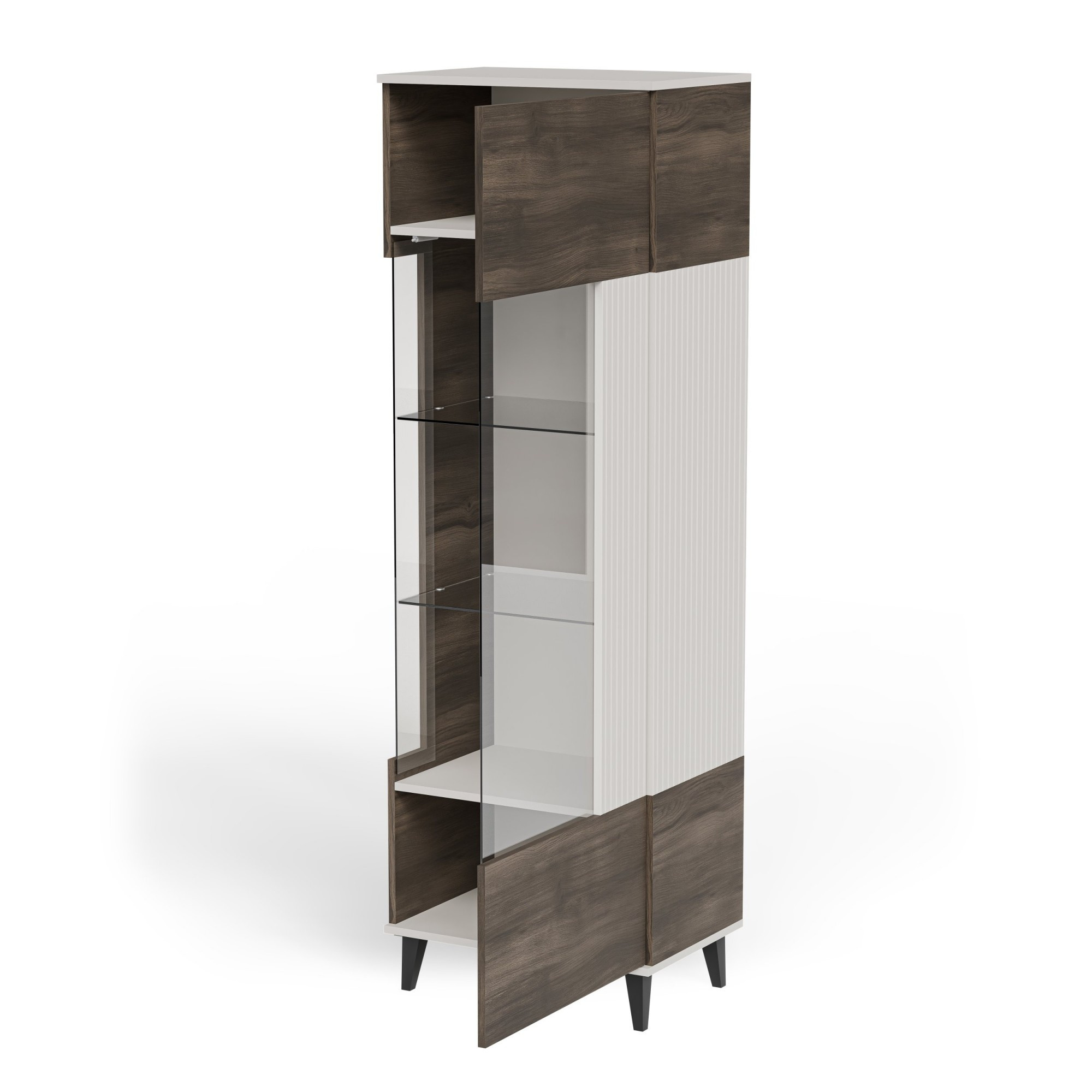 vitrína, rozměry: 60/40/182 cm, materiál: dýhovaná MDF / dýhovaná nábytková deska / polypropylen, barva: kašmír - ořech - černá